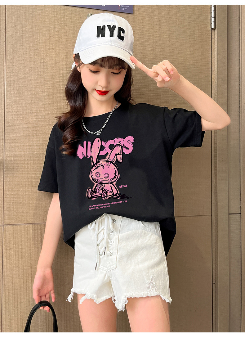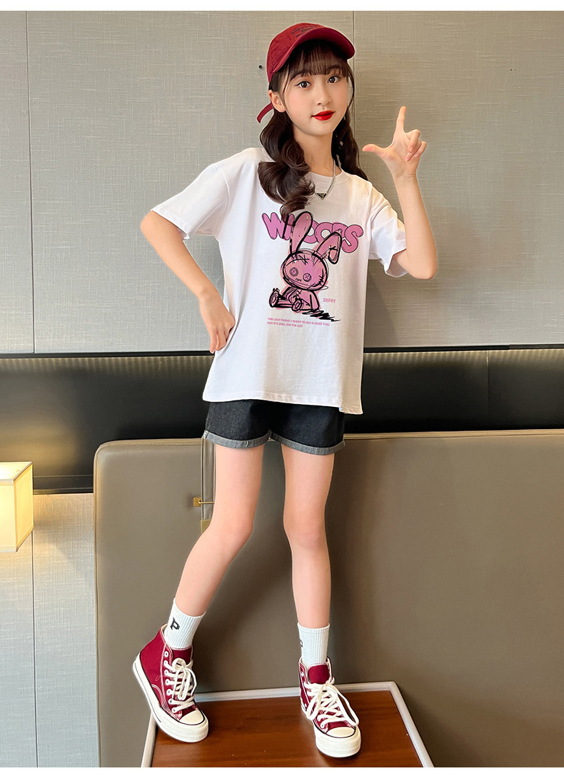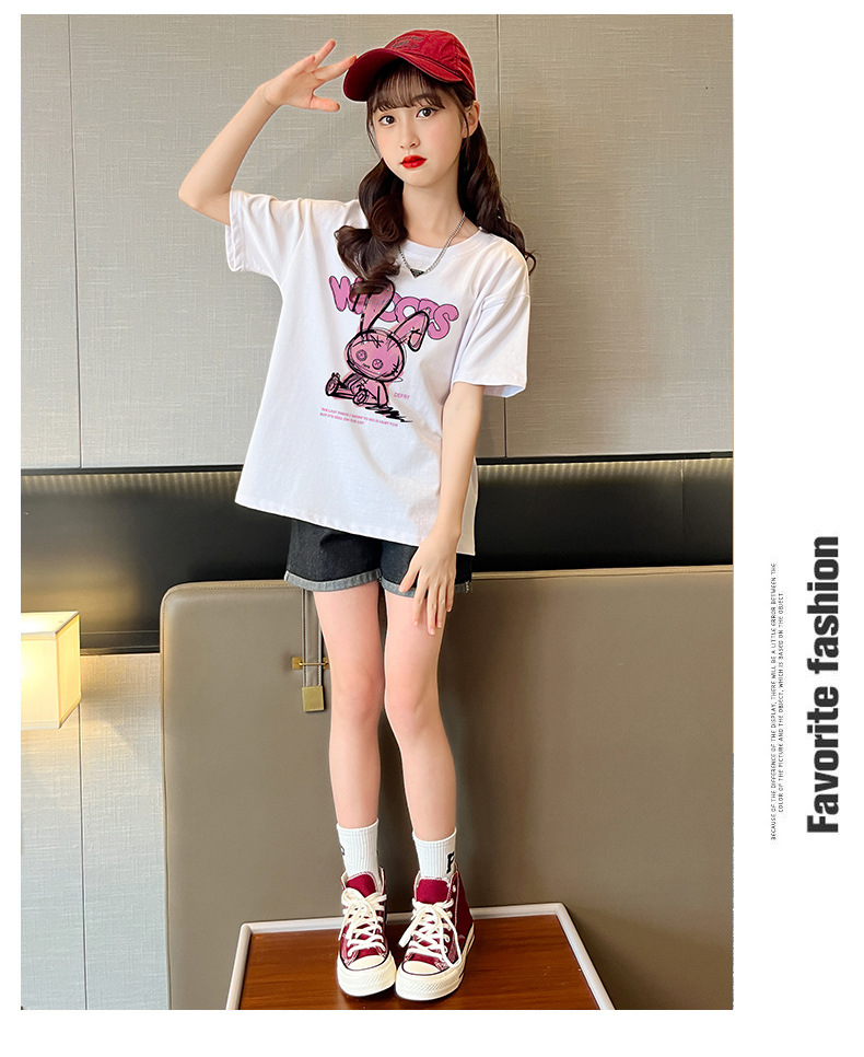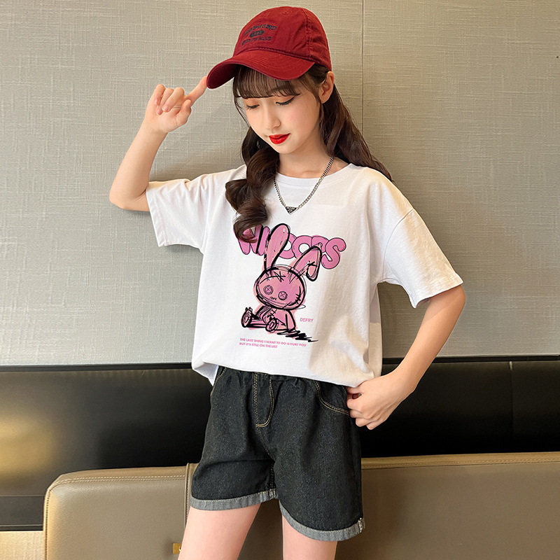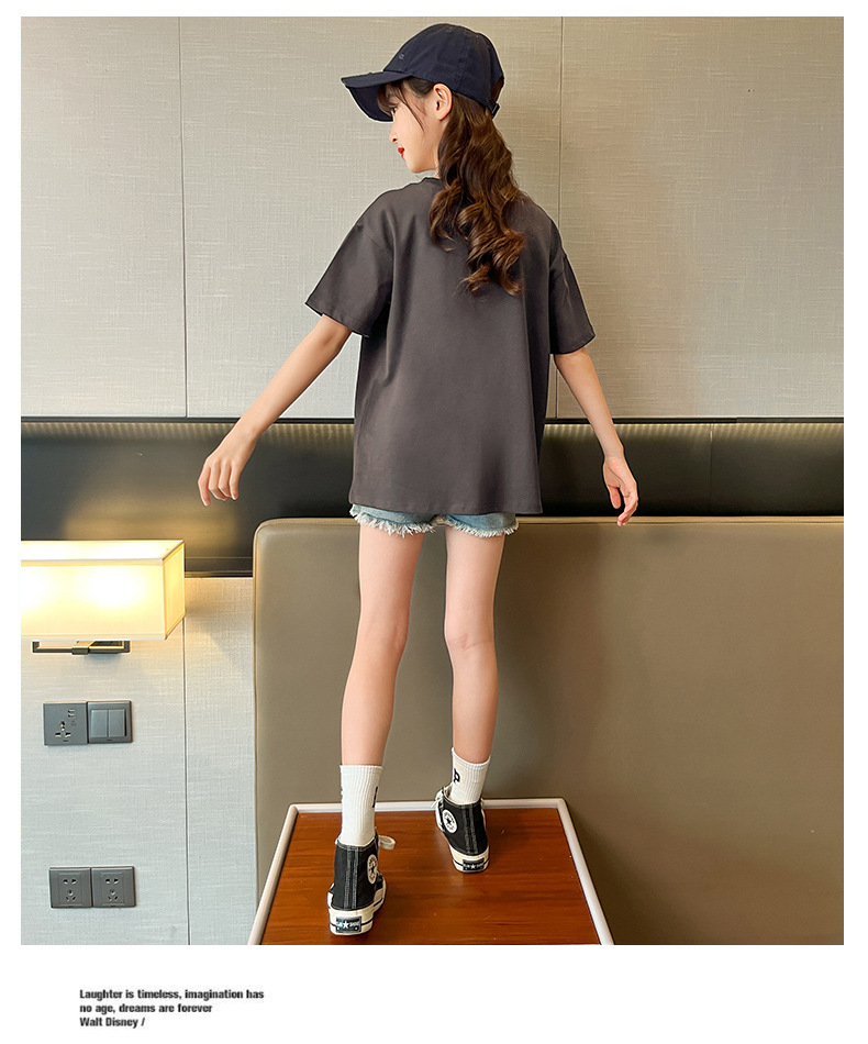 리얼 샷 여아 반팔 순면 티셔츠 빅 키즈 여름 반팔 티셔츠 웨스턴 스타일 캐주얼 탑 아름다운 소녀 귀여운 유행스토어 가기