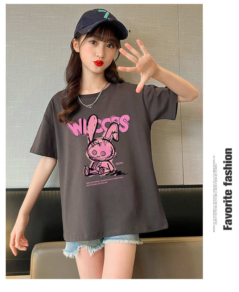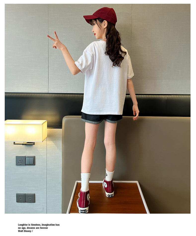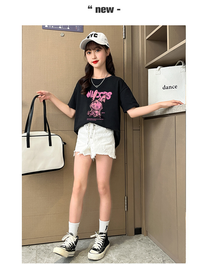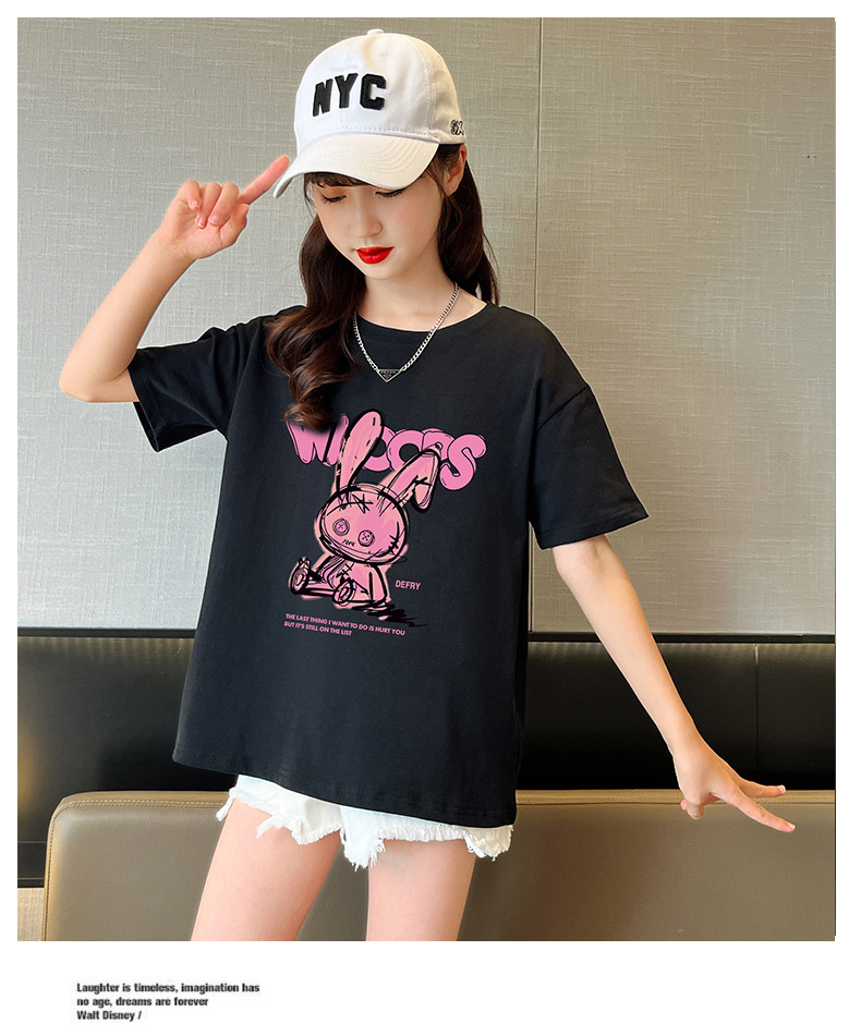 리얼 샷 여아 반팔 순면 티셔츠 빅 키즈 여름 반팔 티셔츠 웨스턴 스타일 캐주얼 탑 아름다운 소녀 귀여운 유행스토어 가기