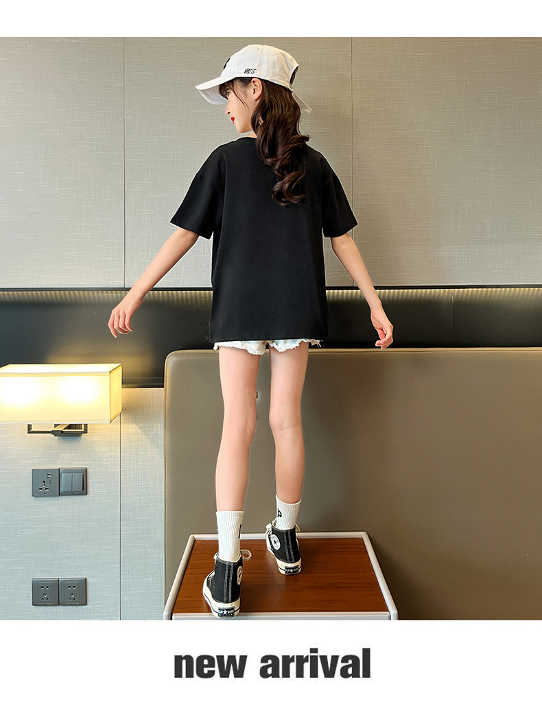 리얼 샷 여아 반팔 순면 티셔츠 빅 키즈 여름 반팔 티셔츠 웨스턴 스타일 캐주얼 탑 아름다운 소녀 귀여운 유행