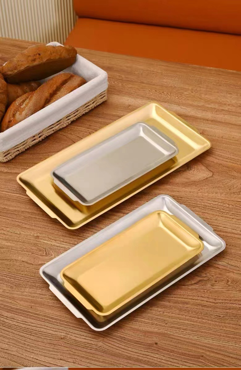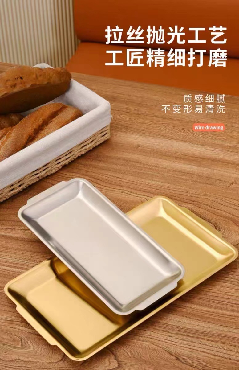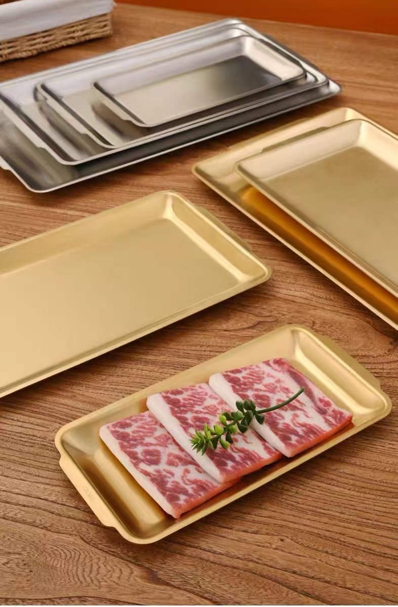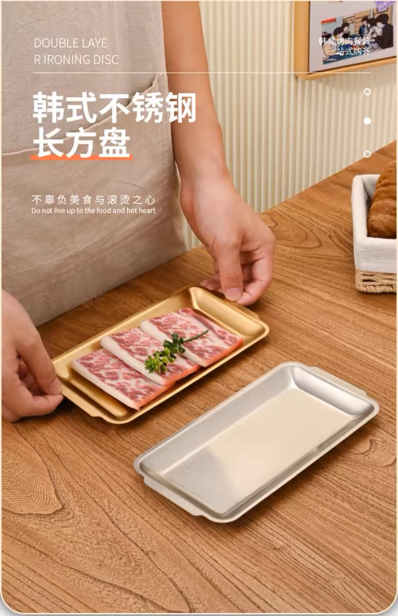 한국식 스테인리스 바베큐 접시 직사각형 두꺼운 상업용 금색 평평한 접시 식사 접시 트레이 스테이크 공장스토어 가기