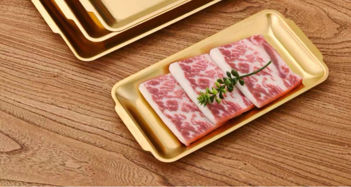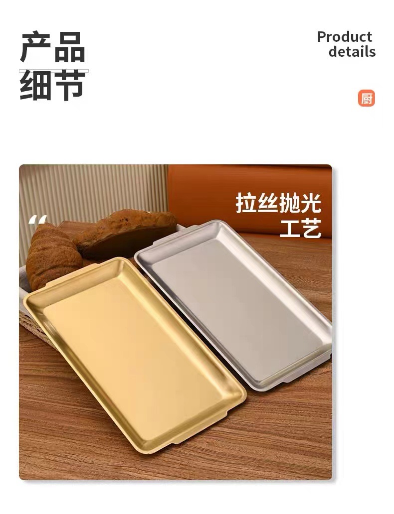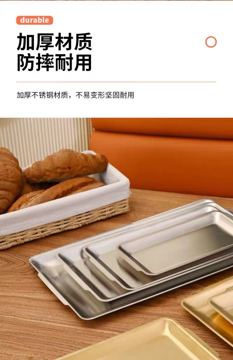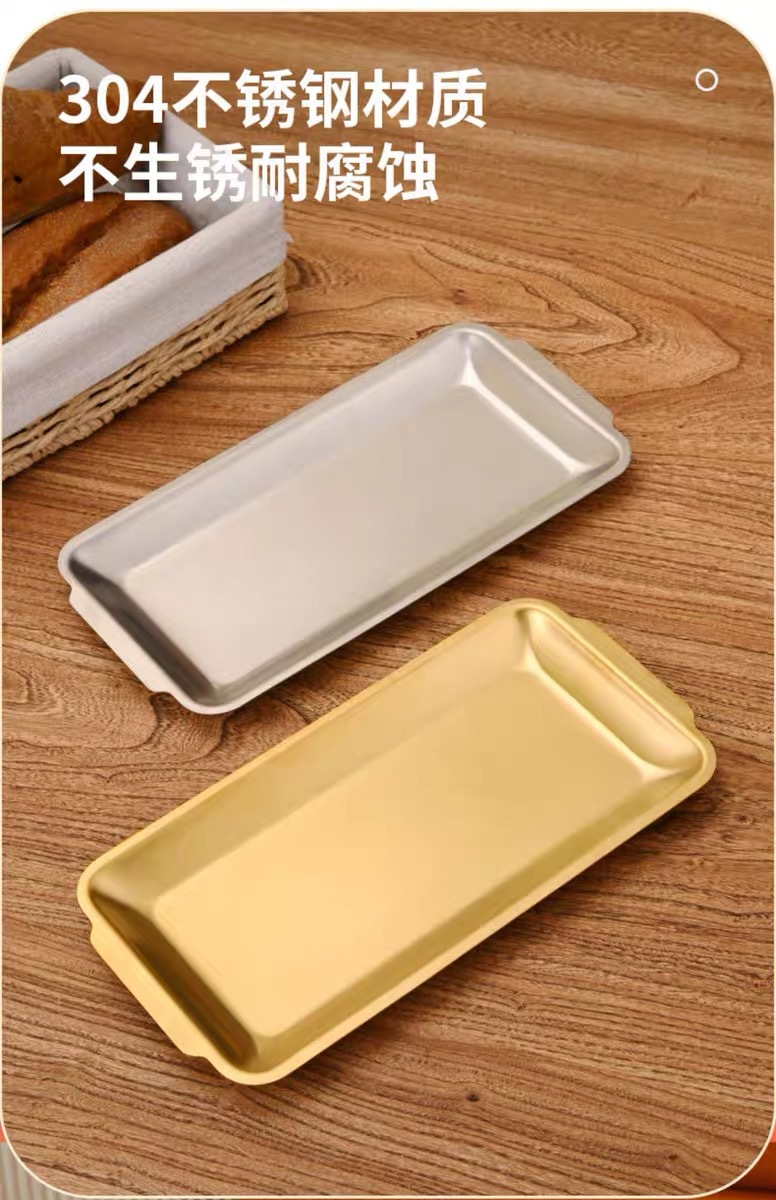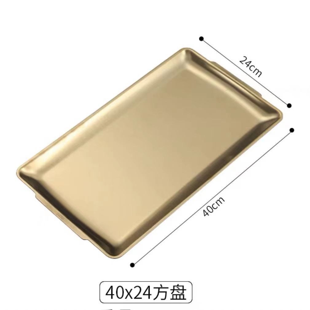한국식 스테인리스 바베큐 접시 직사각형 두꺼운 상업용 금색 평평한 접시 식사 접시 트레이 스테이크 공장스토어 가기