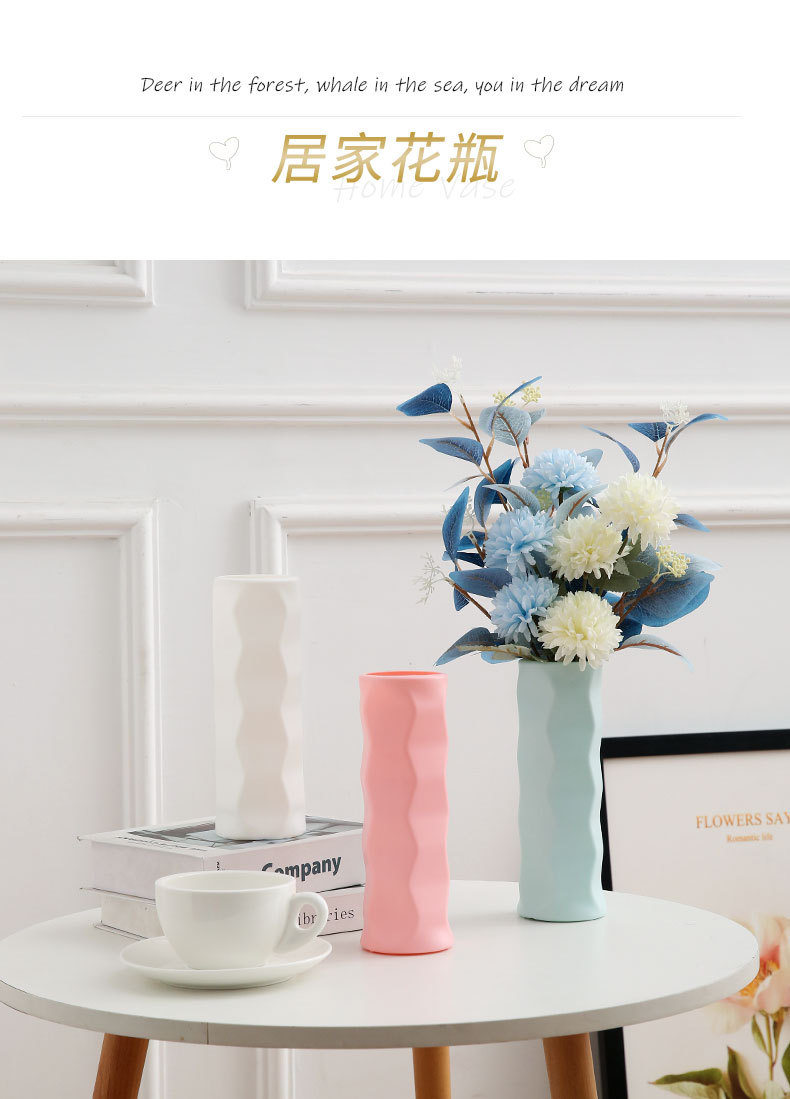 북유럽 컬러 꽃병에 플라스틱 꽃병 홈 동백 보석 장식품 크리 에이 티브 꽃 배열 장치 건조 및 습식 모조 유약 꽃병