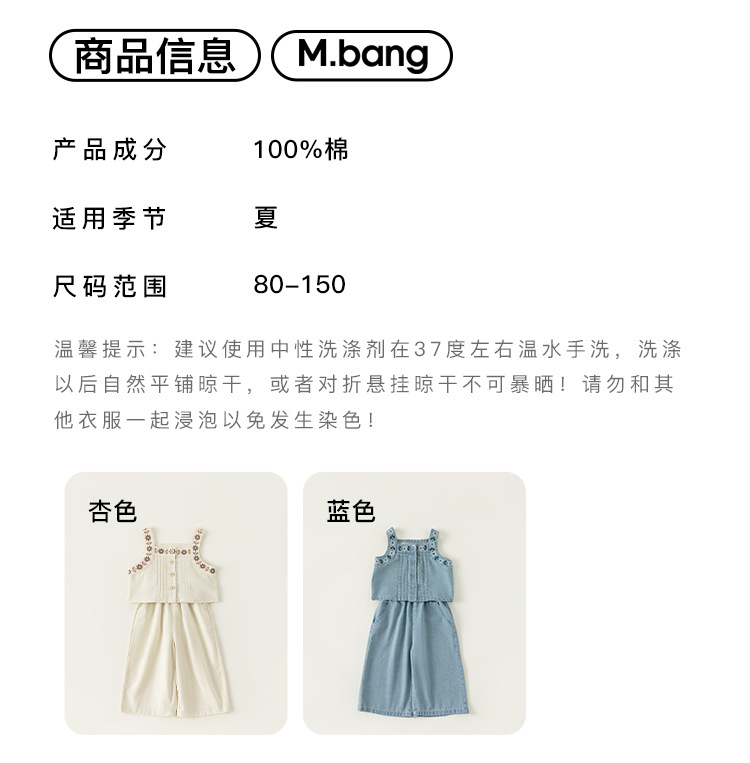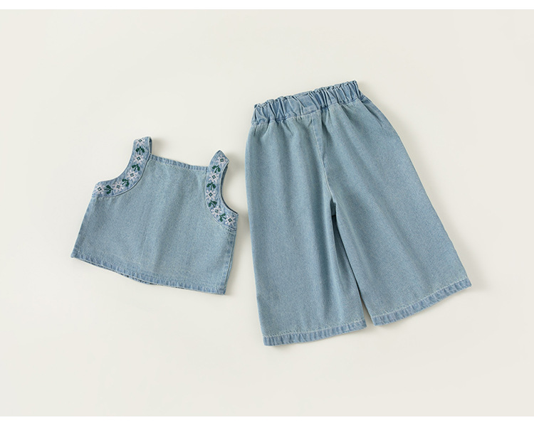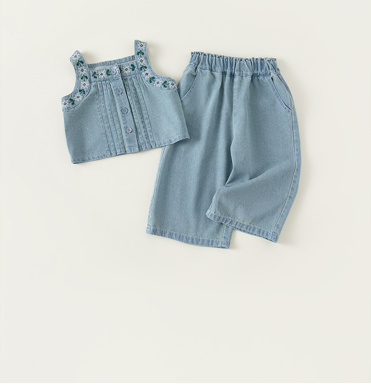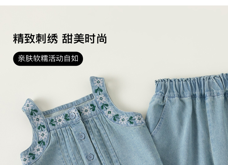 유바오 아동복 여아 2026 여름 데님 멜빵 와이드 팬츠 투피스 세트 아기 스타일리쉬한 캐주얼 슈트스토어 가기