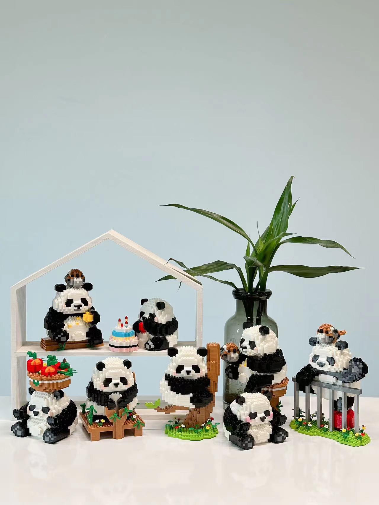 차오 르 장 팬더 꽃 빌딩 블록 멩 란 구오 라이 조립 DIY 모델 6755-6759 A 생성 도매스토어 가기
