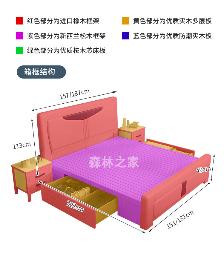전체 단단한 나무 침대 모던 심플 더블 1.8 미터 마스터 침실 수납 침대 1.5 침실 양각 높은 상자 침대 공장 직판스토어 가기