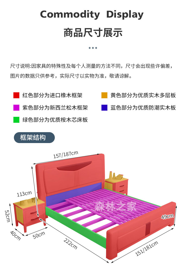 • 단색 목재 싱글 침대 주문 색상에 유의하십시오