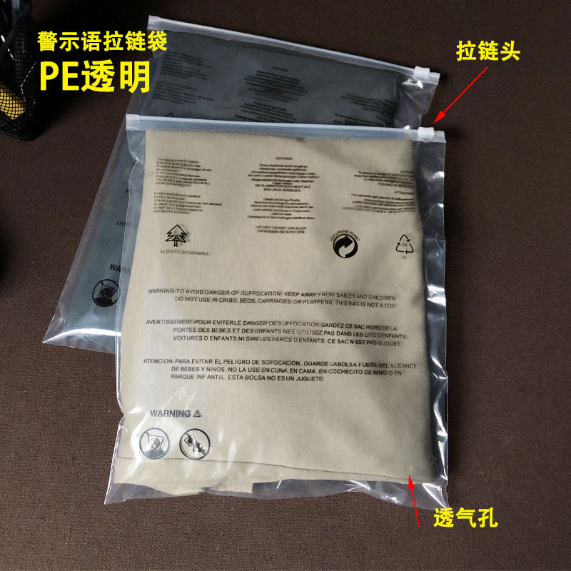 프로스트 지퍼 가방 PE 바지 신발 및 양말 의류 포장 가방 투명 경고 비닐 봉투 EVA 당기기 링 버클 보관 가방