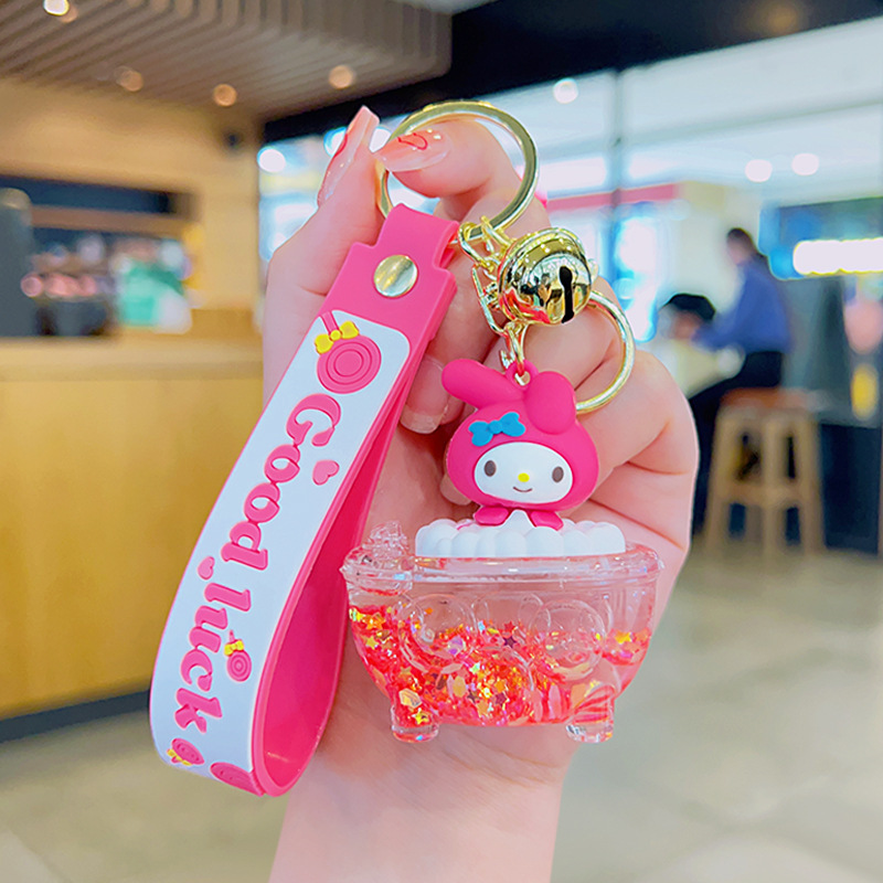 아크릴 퀵 샌드 병 오일 키 체인 선물 도매 책가방 펜던트 인형 귀여운 퀵 샌드 펜던트 키 체인스토어 가기