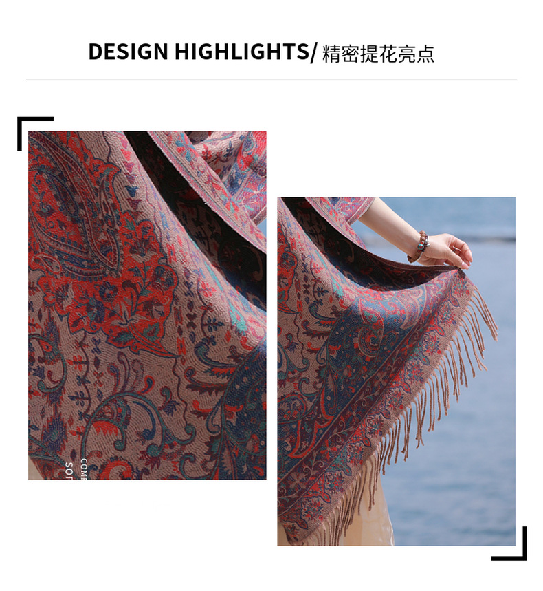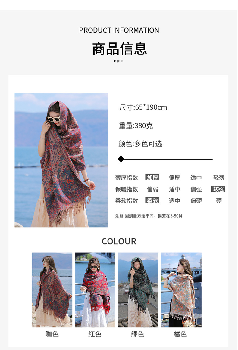 Yunnan Lijiang 여행 새로운 스타일 숄 에스닉 스타일 스카프 여자의 복고풍 망토 사진 두꺼운 캐시미어 스카프스토어 가기