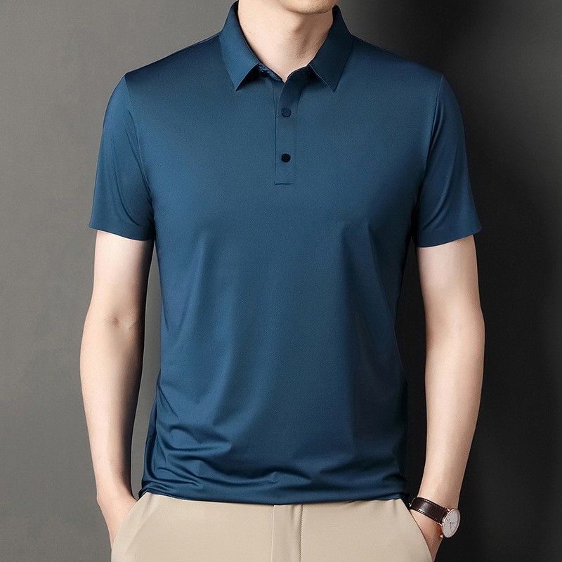 短袖T恤男2023夏季新款无痕免烫翻领休闲薄款丝光棉半袖polo衫