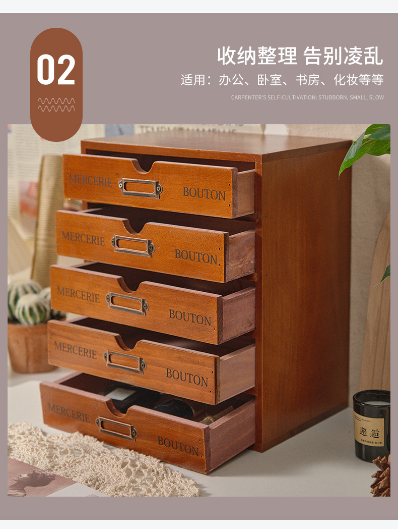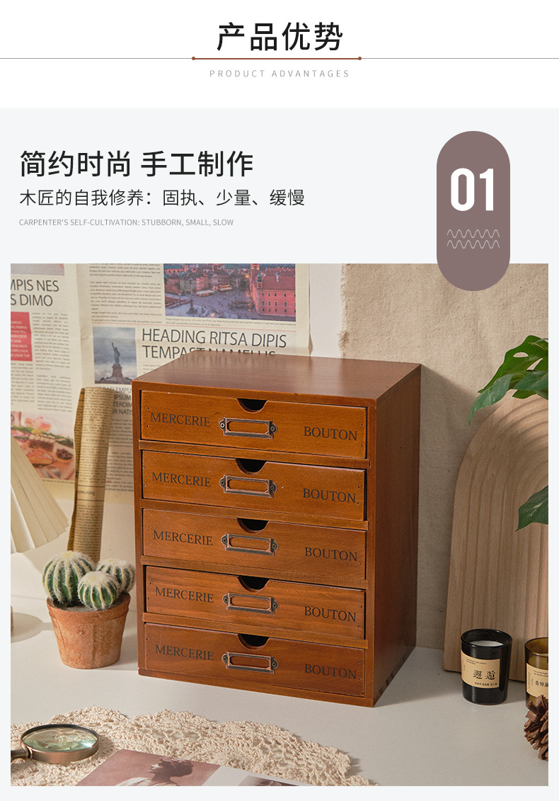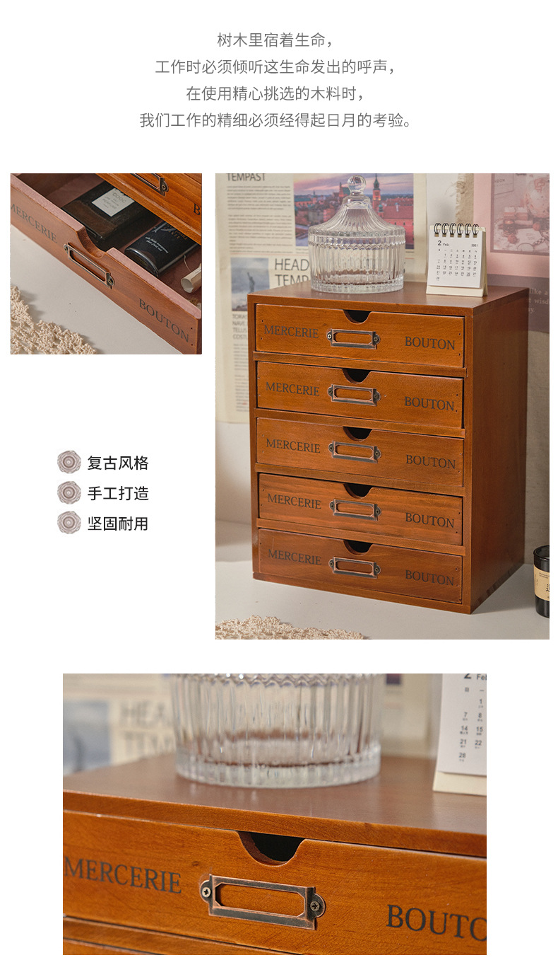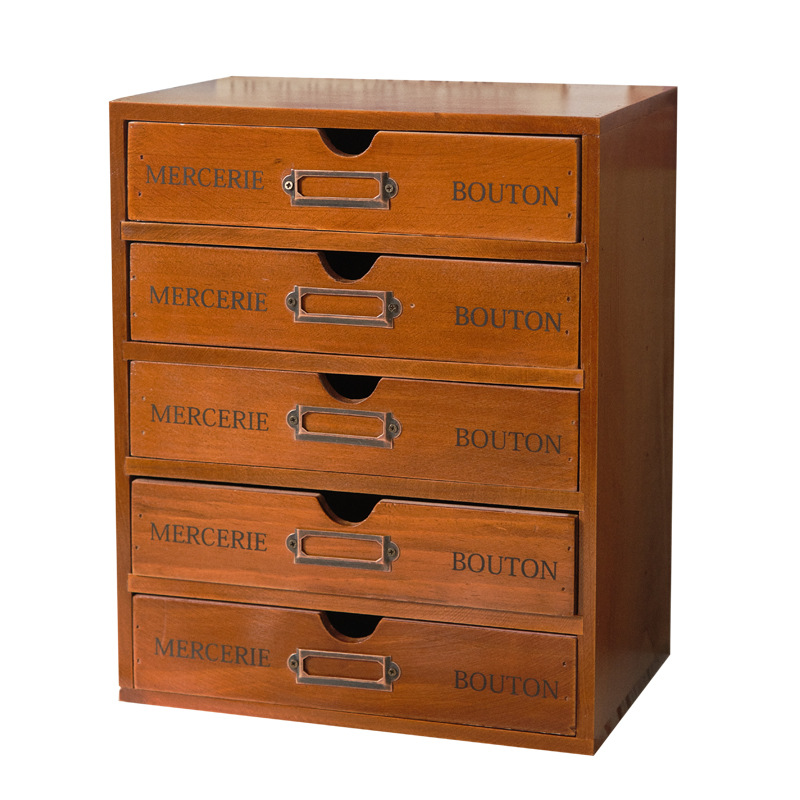 나무 5 층 서랍 보관 캐비닛 기숙사 사무실 데스크탑 빈티지 보관 상자 작은 조리대 보관 캐비닛