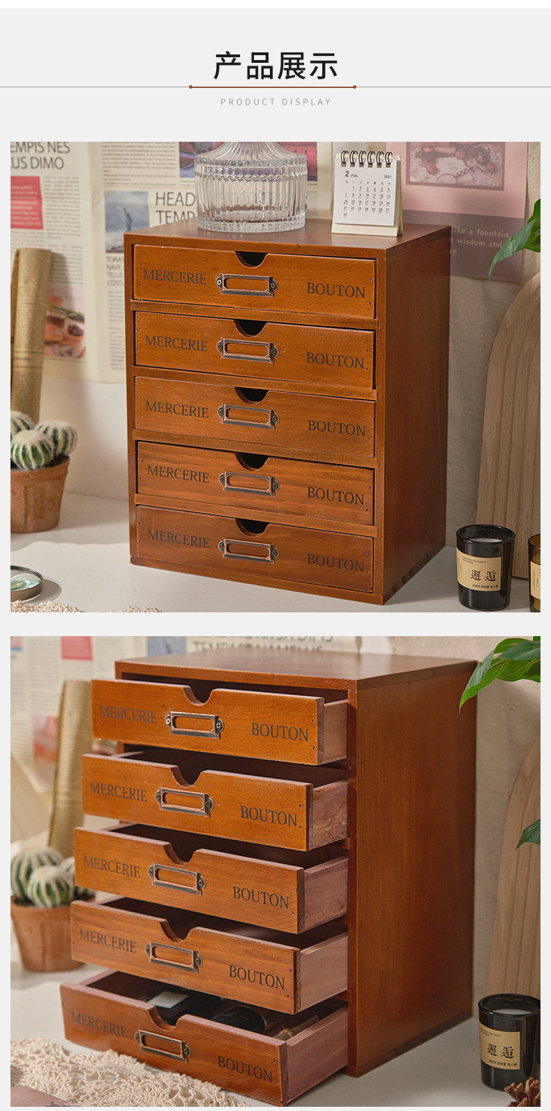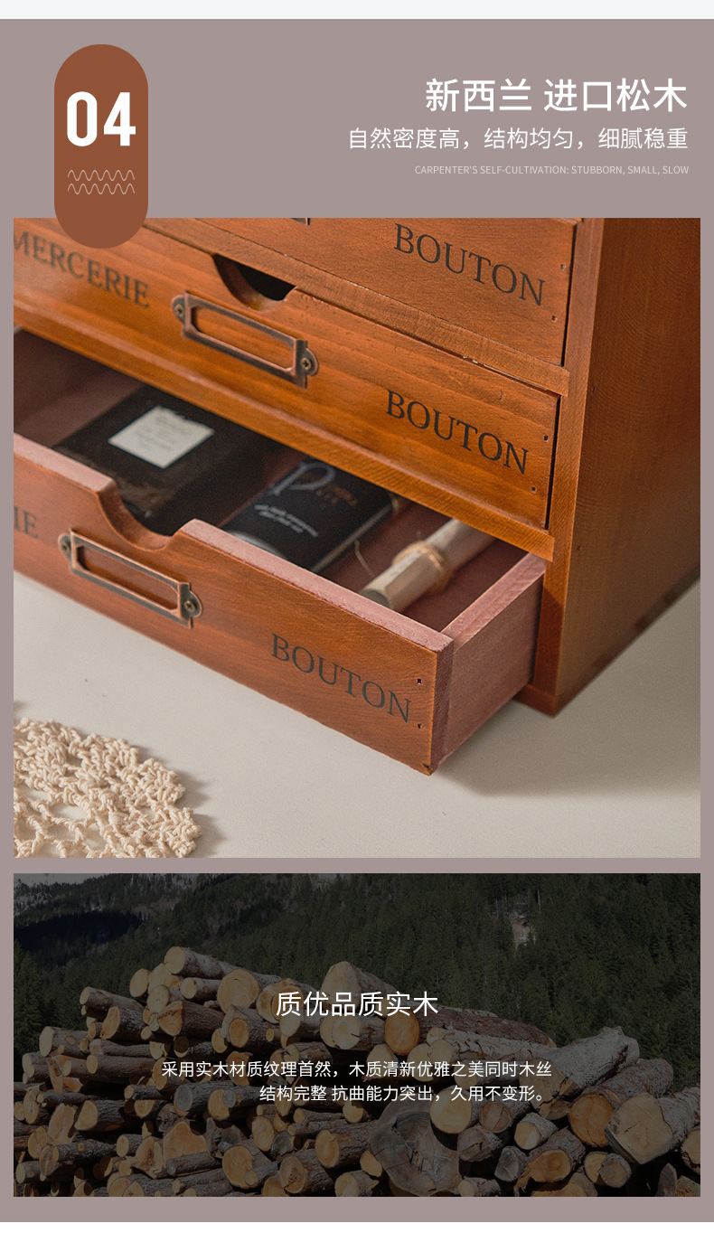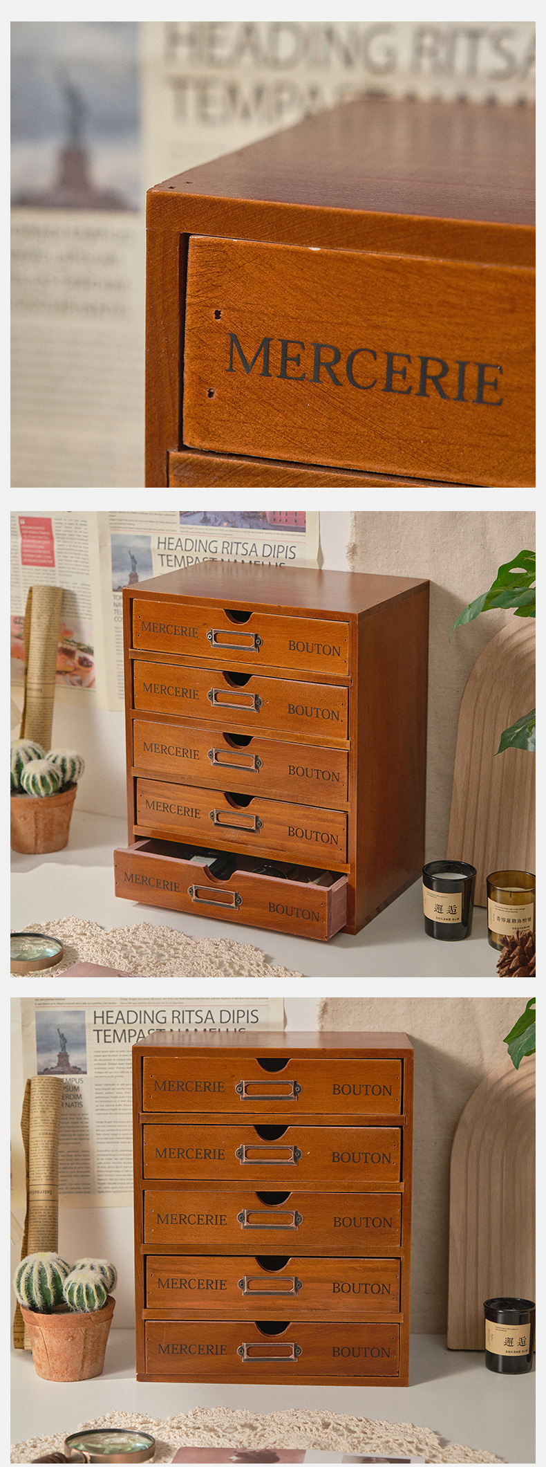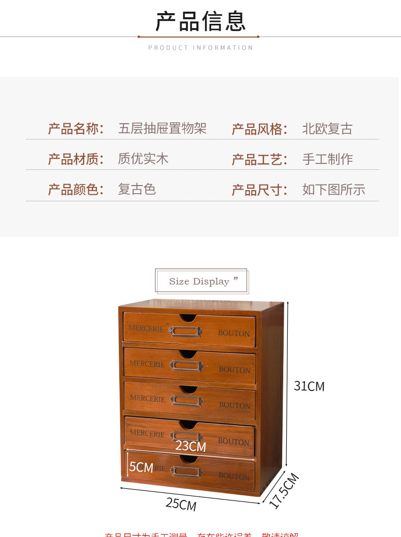 나무 5 층 서랍 보관 캐비닛 기숙사 사무실 데스크탑 빈티지 보관 상자 작은 조리대 보관 캐비닛