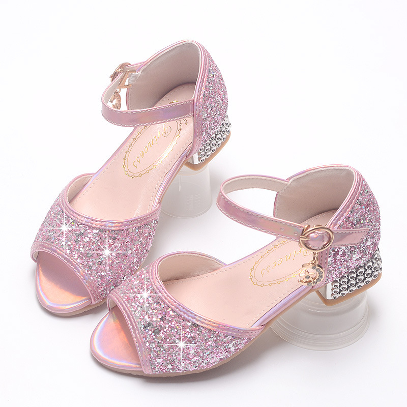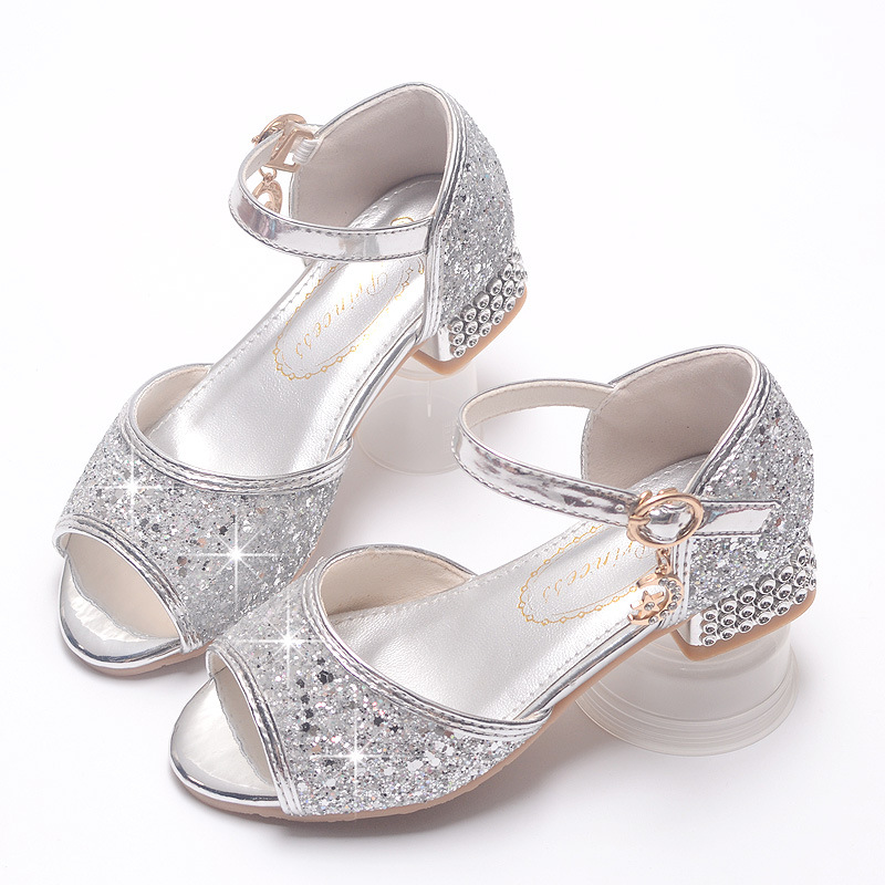 여자 샌들 2023 새로운 아이샤 공주 신발 냉동 어린이 하이힐 모델 쇼 크리스탈 가죽 신발