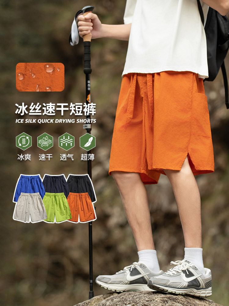 IZEXX 아이스 실크 속건 반바지 남성 캐주얼 루즈핏 비치 팬츠 스포츠 캠퍼스 스타일 5부 바지 캐주얼 만능템스토어 가기