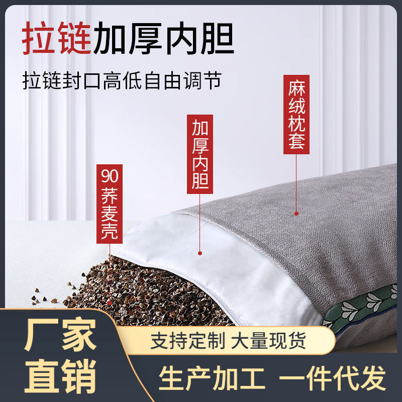 4R9Z 도매 쌀 껍질 베개 마 벨벳 풀 메밀 껍질 메밀 베개 대형 성인 목 보호 메밀 가죽 베개 코어 롱