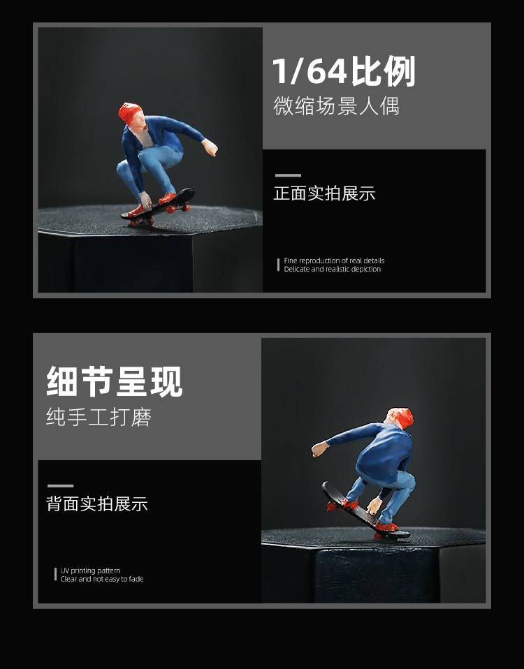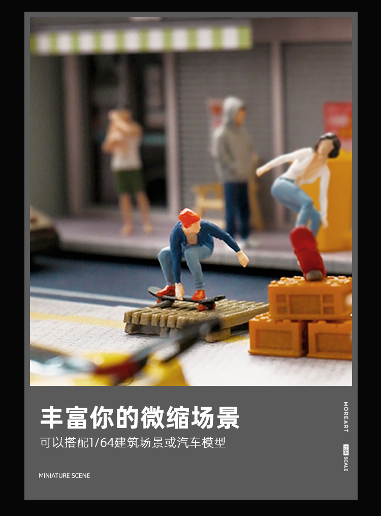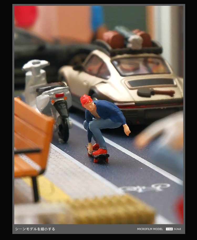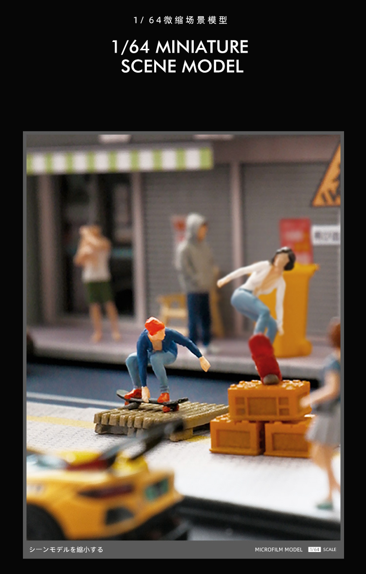 1:64 스케이트 보드 시리즈 미니어처 인형 모델 창작 장면 주변 장식 장식품 마이크로 사진 샌드 테이블 소품