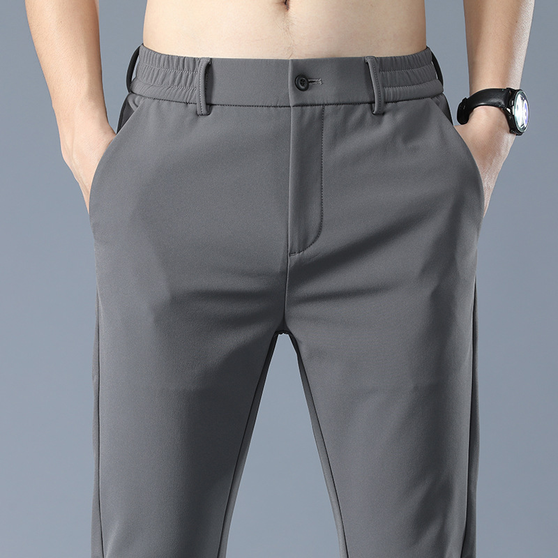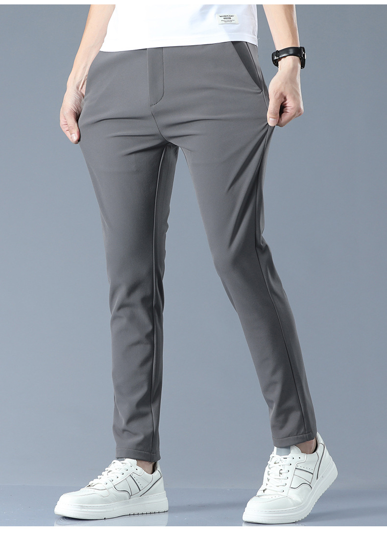 봄과 여름 얇은 실키 탄성 허리 서양 바지 남성 캐주얼 바지 슬림 스트레이트 비즈니스 서양 바지