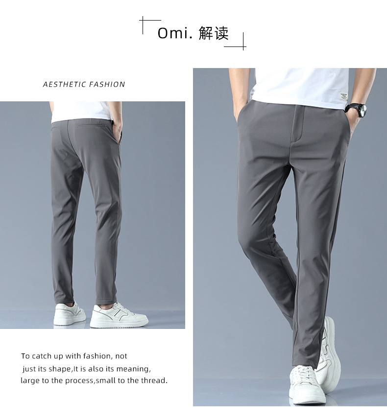 봄과 여름 얇은 실키 탄성 허리 서양 바지 남성 캐주얼 바지 슬림 스트레이트 비즈니스 서양 바지스토어 가기