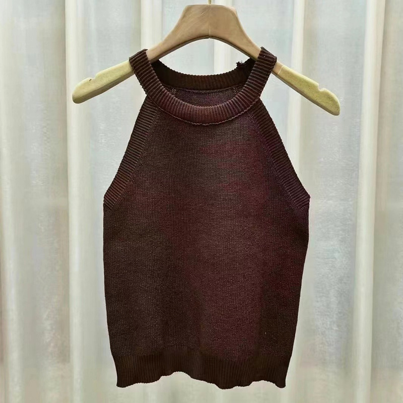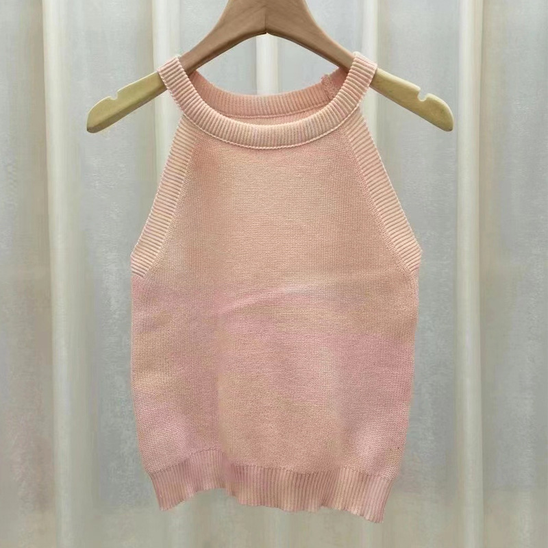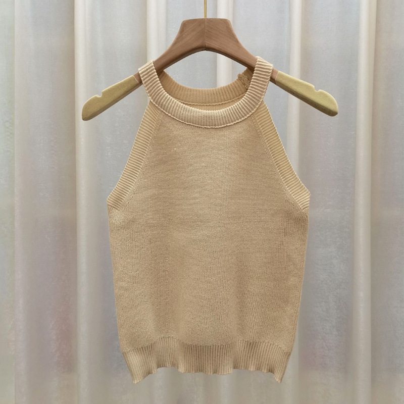 2023 신상품 스파이스 걸 모든 매치 오프 숄더 짧은 홀터 셔츠 여성용 여름 얇은 겉옷 니트 작은 조끼스토어 가기