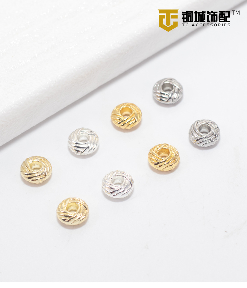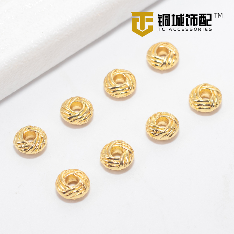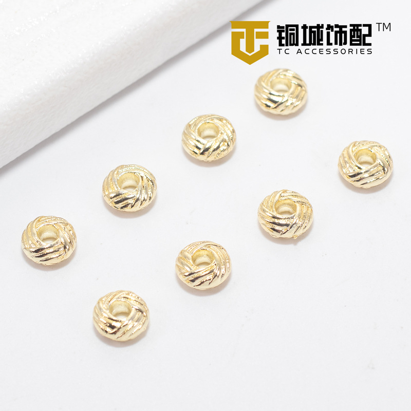14K 골드 컬러 보존 파인애플 매듭 스페이서 구슬 도금 실제 골드 트위스트 와인딩 구슬 수제 DIY 팔찌 느슨한 구슬 액세서리