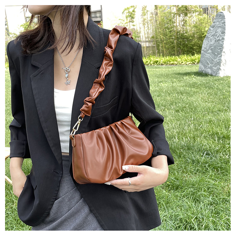 여성용 가방 단색 신상 한국 스타일 패션 주름 클라우드 백 캐주얼 트렌디 심플 질감 겨드랑이 숄더백 도매스토어 가기