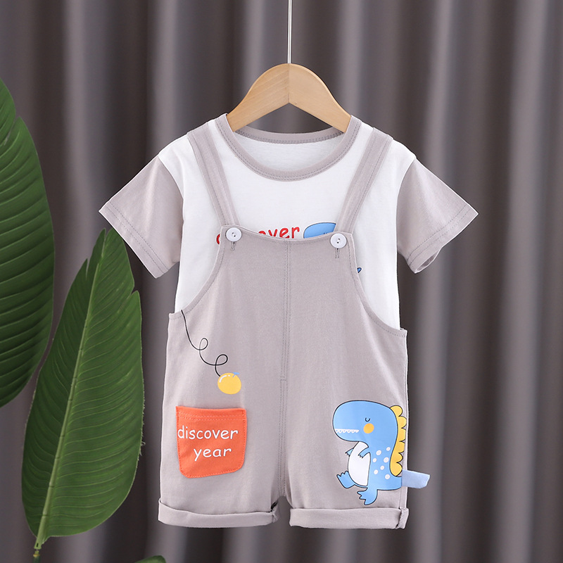 남아 2 여름 의류 스티칭 세트 여아 아기 반팔 작업복 투피스 세트 아동 서양식 아기 옷 트렌디 3스토어 가기