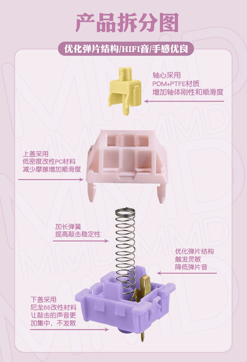 새로운 인기 공주 축 선형 단락 더블 스프링 기계식 키보드 축 바디 맞춤형 액세서리