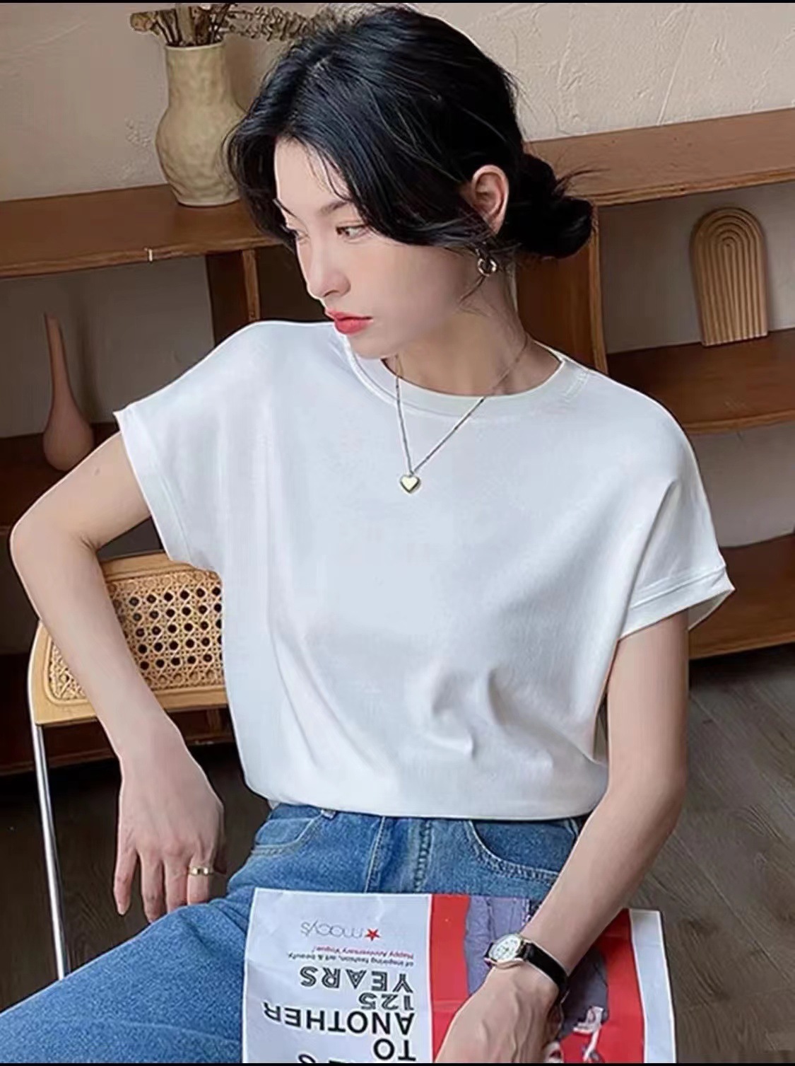 Xiao Fei-소매 반팔 티셔츠 여성용 틈새 단색 패션 2023 여름 유럽 상품 얇은 재킷 기본 셔츠 세대스토어 가기
