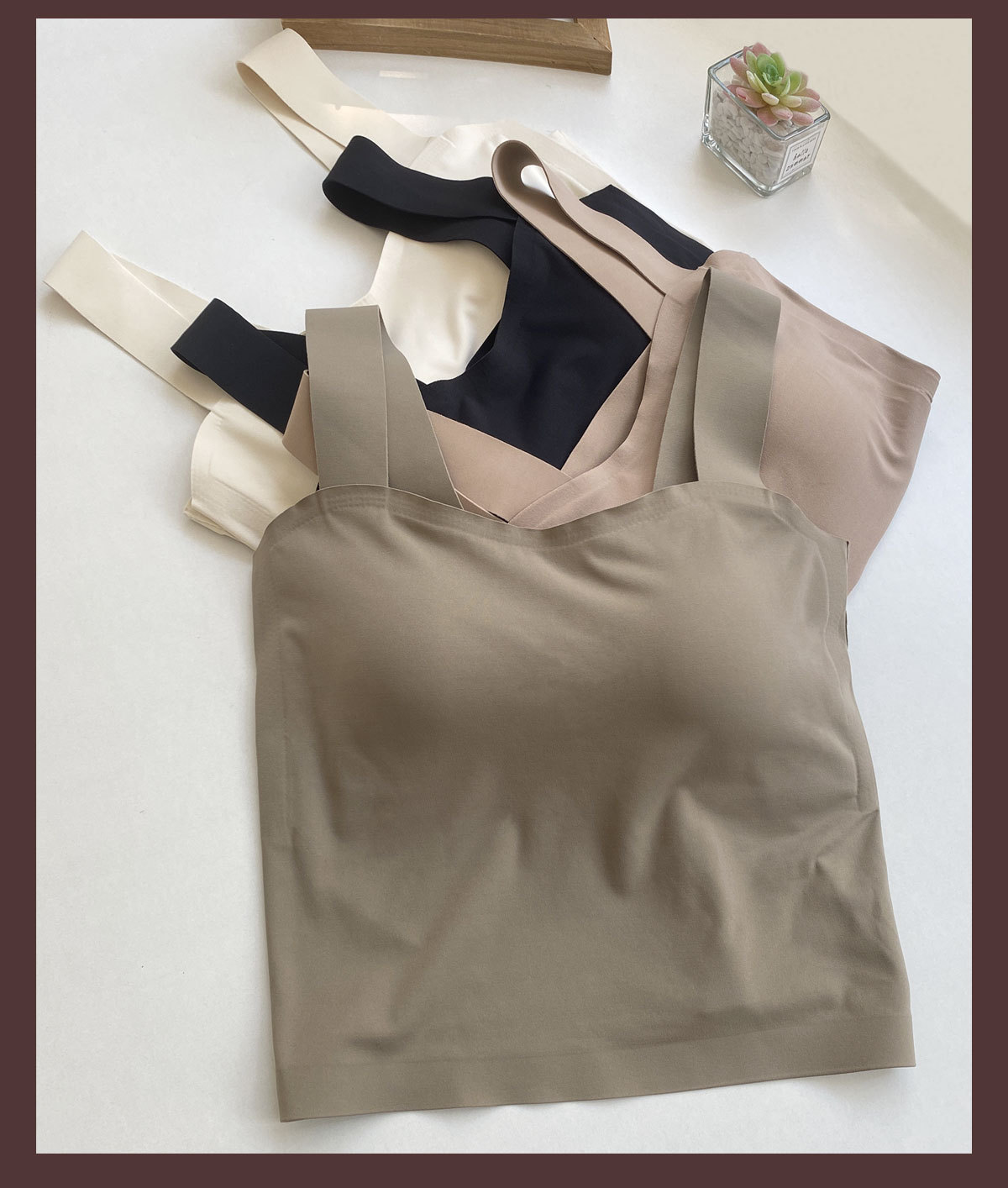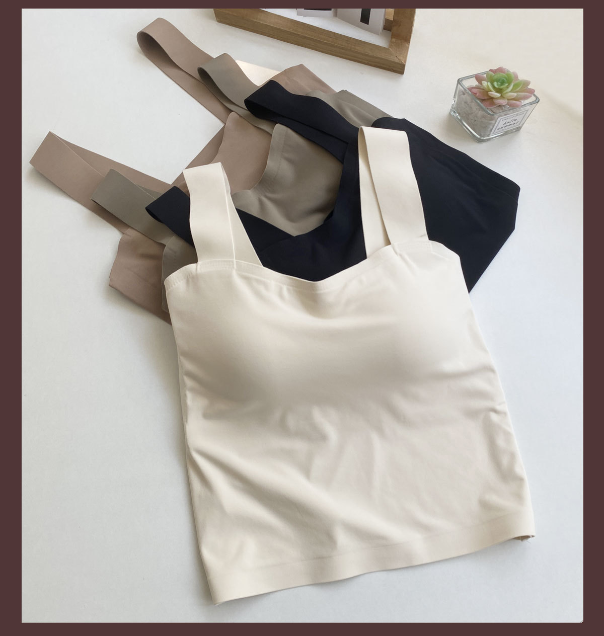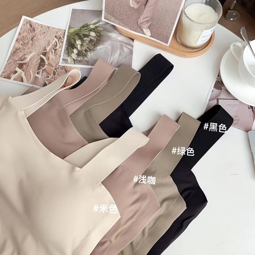 봄과 여름 아이스 실크 와이드 숄더 스트랩 조끼 원활한 조커 캐주얼 아우터 가슴 패드 통합 뷰티 백 슬링 여성 도매