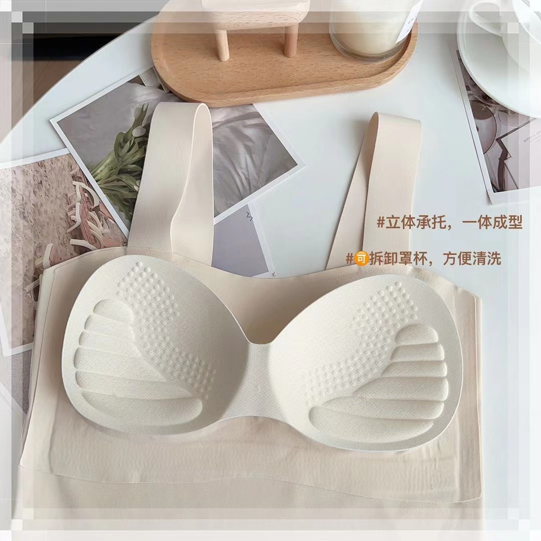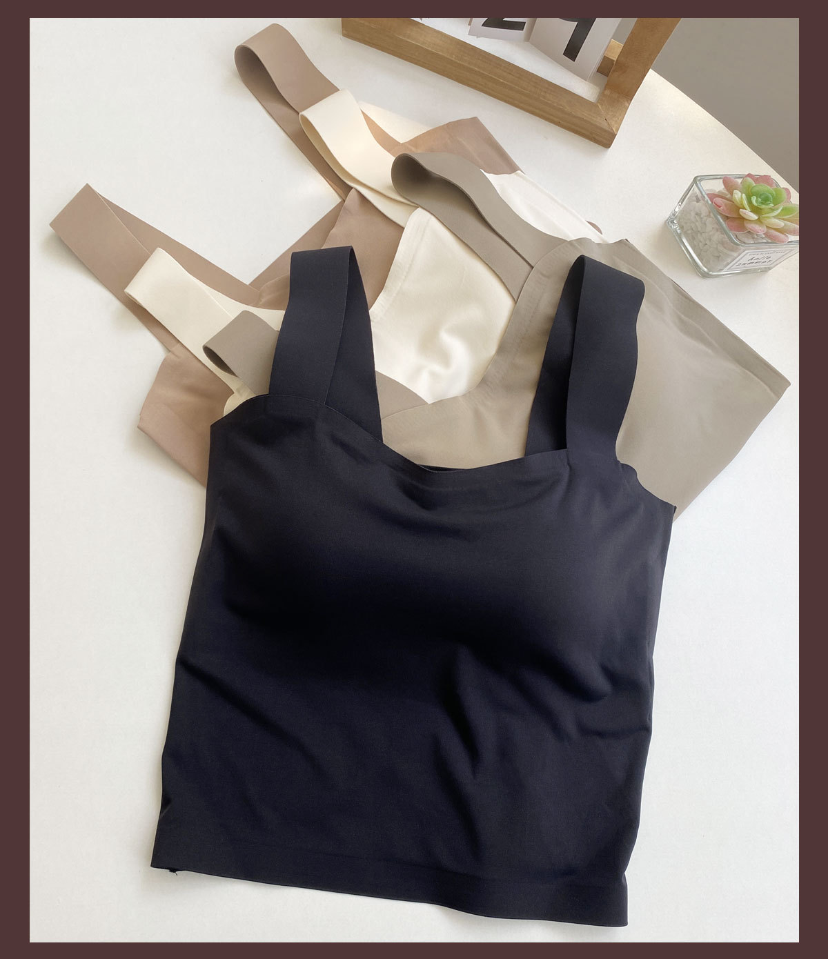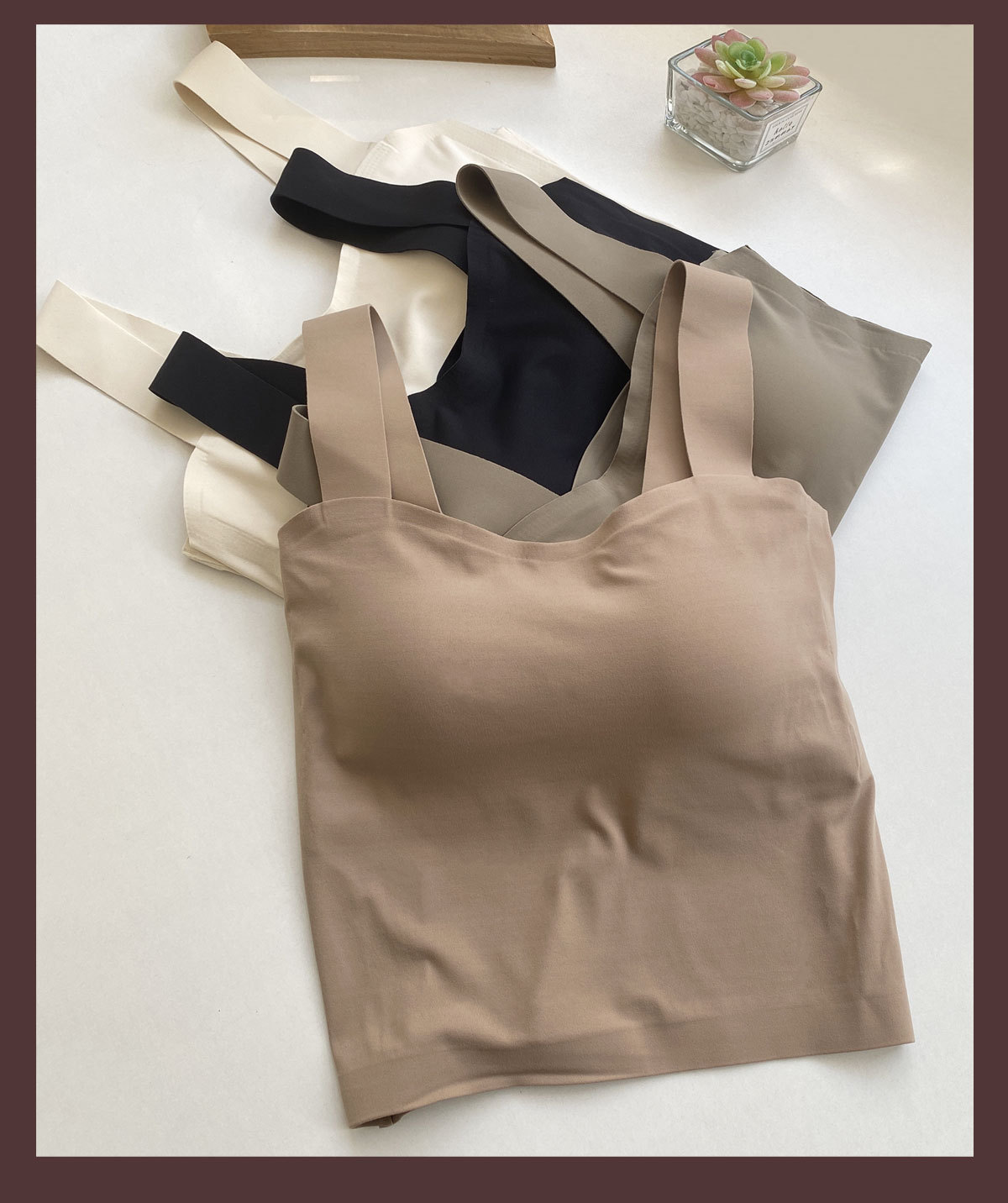 봄과 여름 아이스 실크 와이드 숄더 스트랩 조끼 원활한 조커 캐주얼 아우터 가슴 패드 통합 뷰티 백 슬링 여성 도매