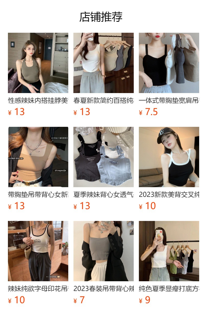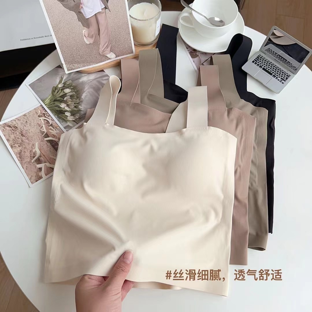 봄과 여름 아이스 실크 와이드 숄더 스트랩 조끼 원활한 조커 캐주얼 아우터 가슴 패드 통합 뷰티 백 슬링 여성 도매스토어 가기