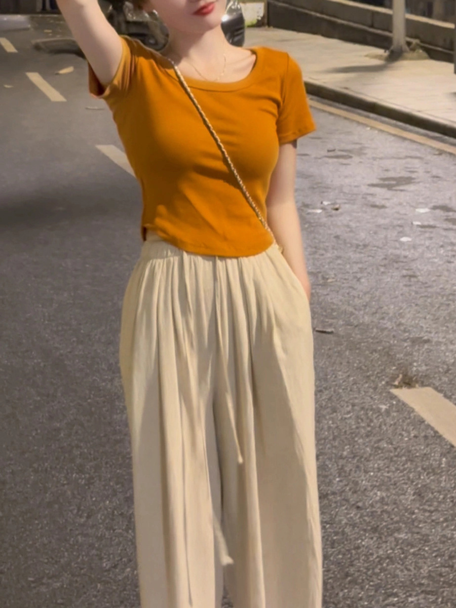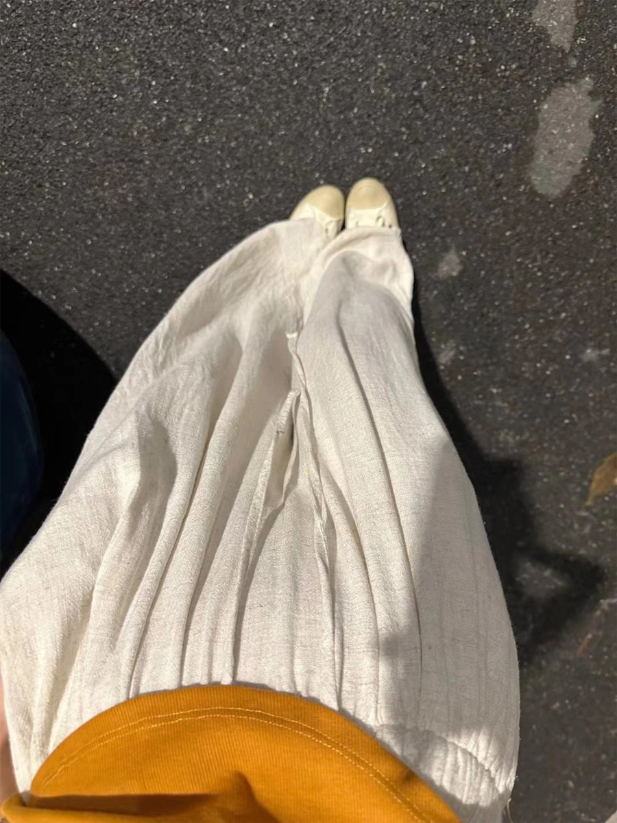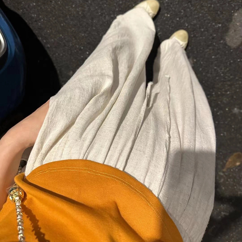 패션 플리츠 코튼 린넨 팬츠 봄과 여름 2023 새로운 하이 웨이스트 모든 매치 한국식 레이스업 팬츠 슬리밍 캐주얼스토어 가기