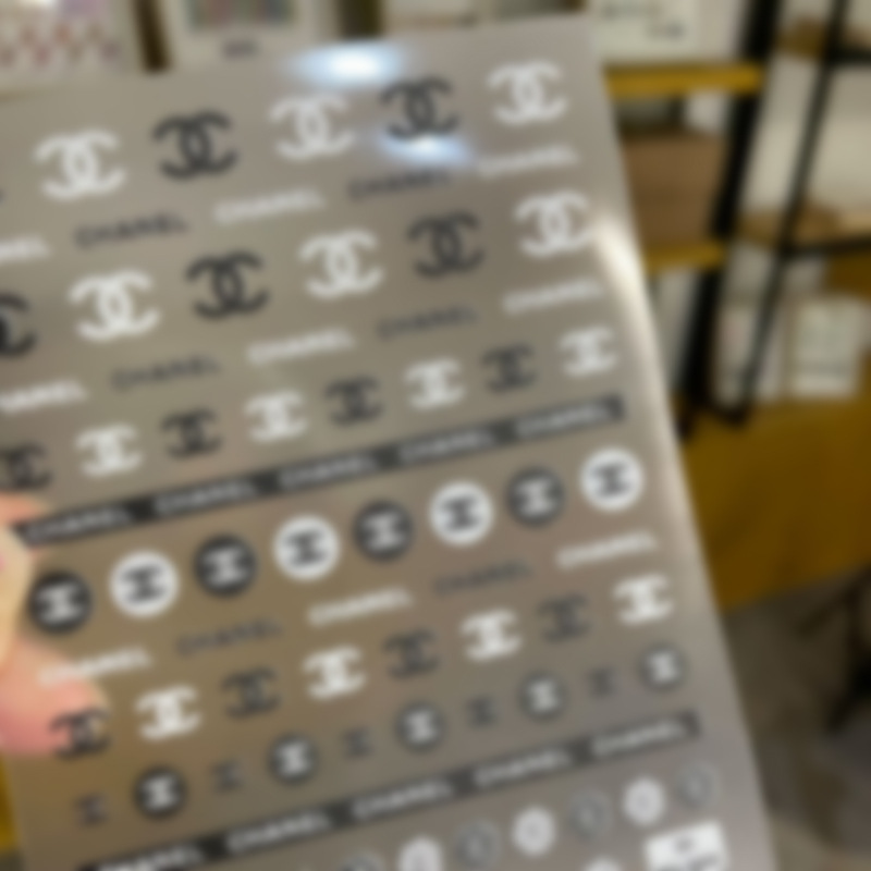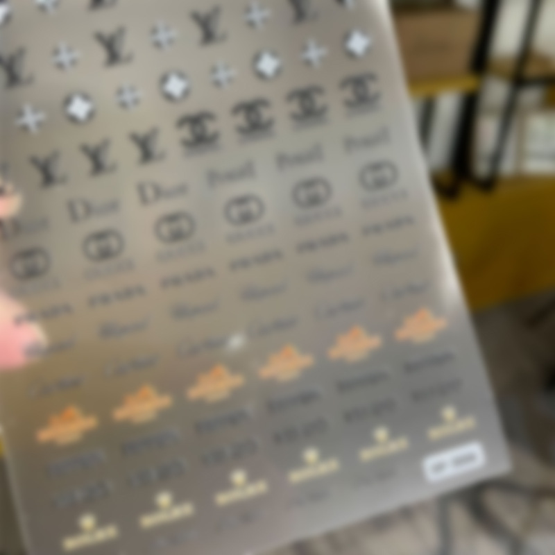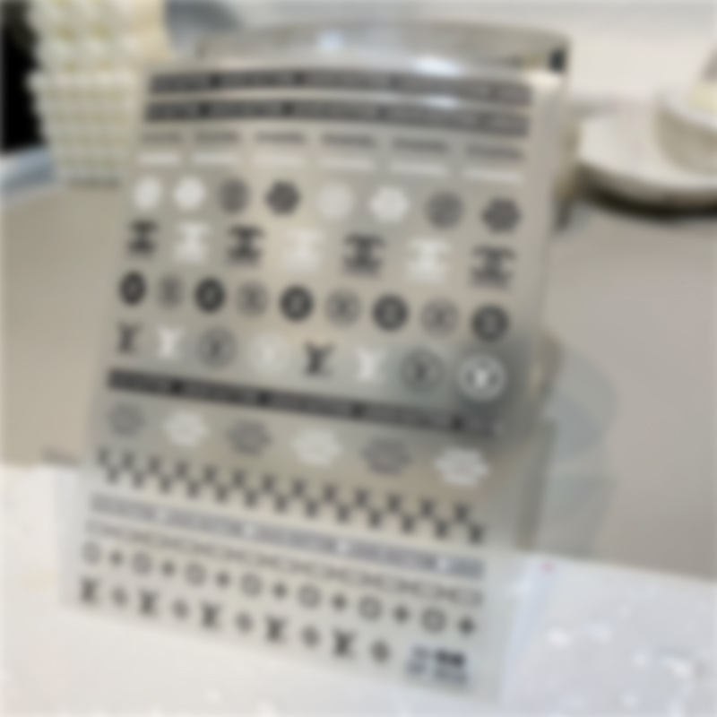 조수 브랜드 큰 브랜드 로고 흰색 격자 긴 파란색과 흰색 스트립 3 차원 구호 접착제 방수 네일 아트 스티커 보석스토어 가기