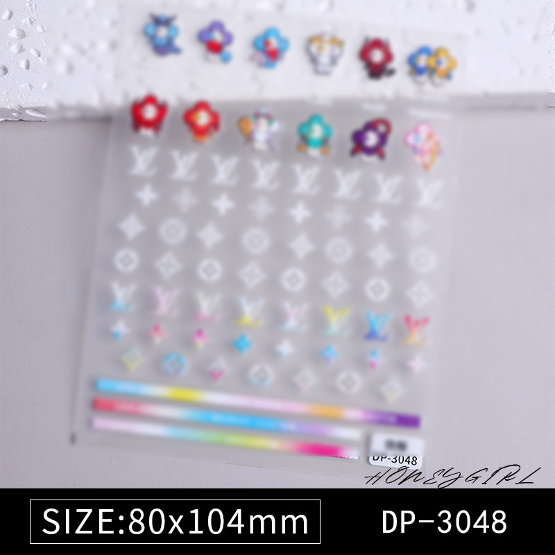 조수 브랜드 큰 브랜드 로고 흰색 격자 긴 파란색과 흰색 스트립 3 차원 구호 접착제 방수 네일 아트 스티커 보석