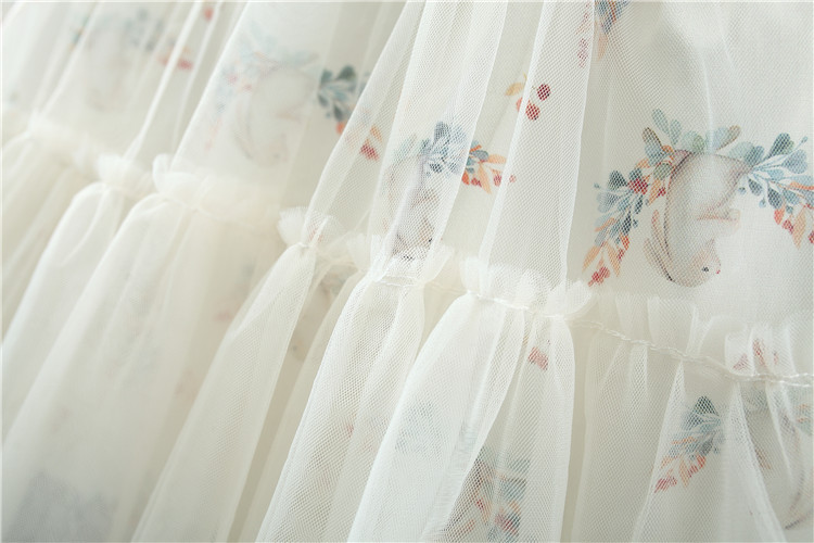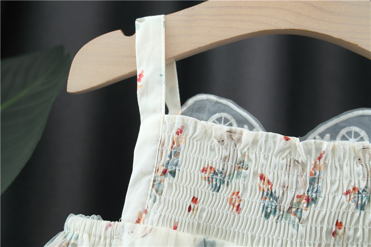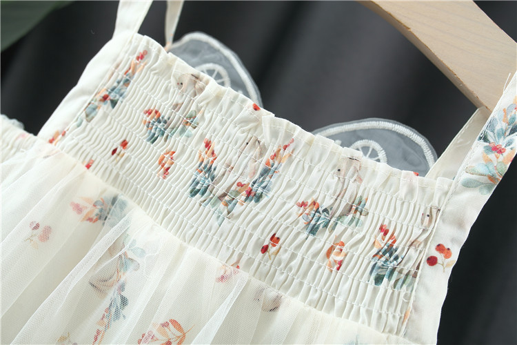 아동 의류 여아 원피스 여름 유아 여아 아기 꽃 인쇄 토끼 나비 스트랩 메쉬 공주 치마
