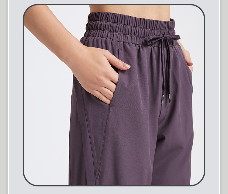 여름 새로운 속건 느슨한 고기 커버 와이드 레그 스포츠 바지 여성용 러닝 피트니스 포켓 하이 웨이스트 캐주얼 요가 바지스토어 가기