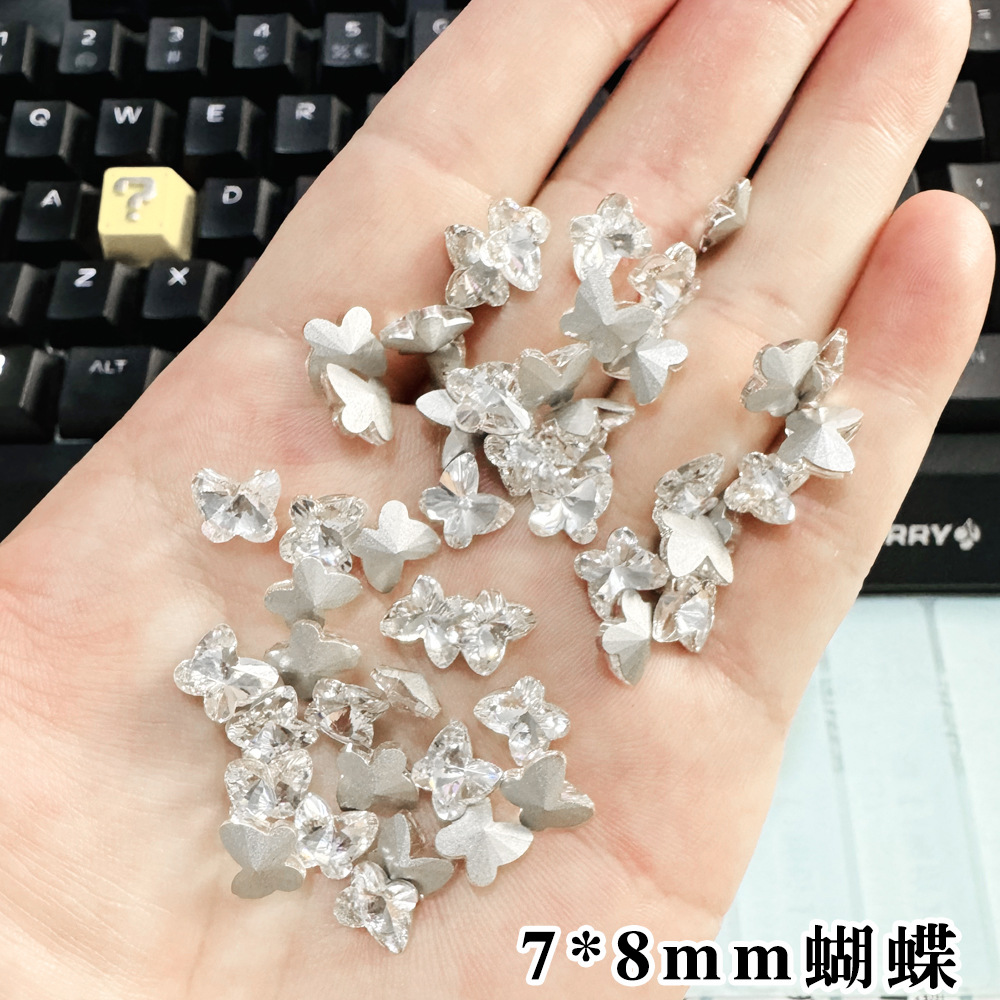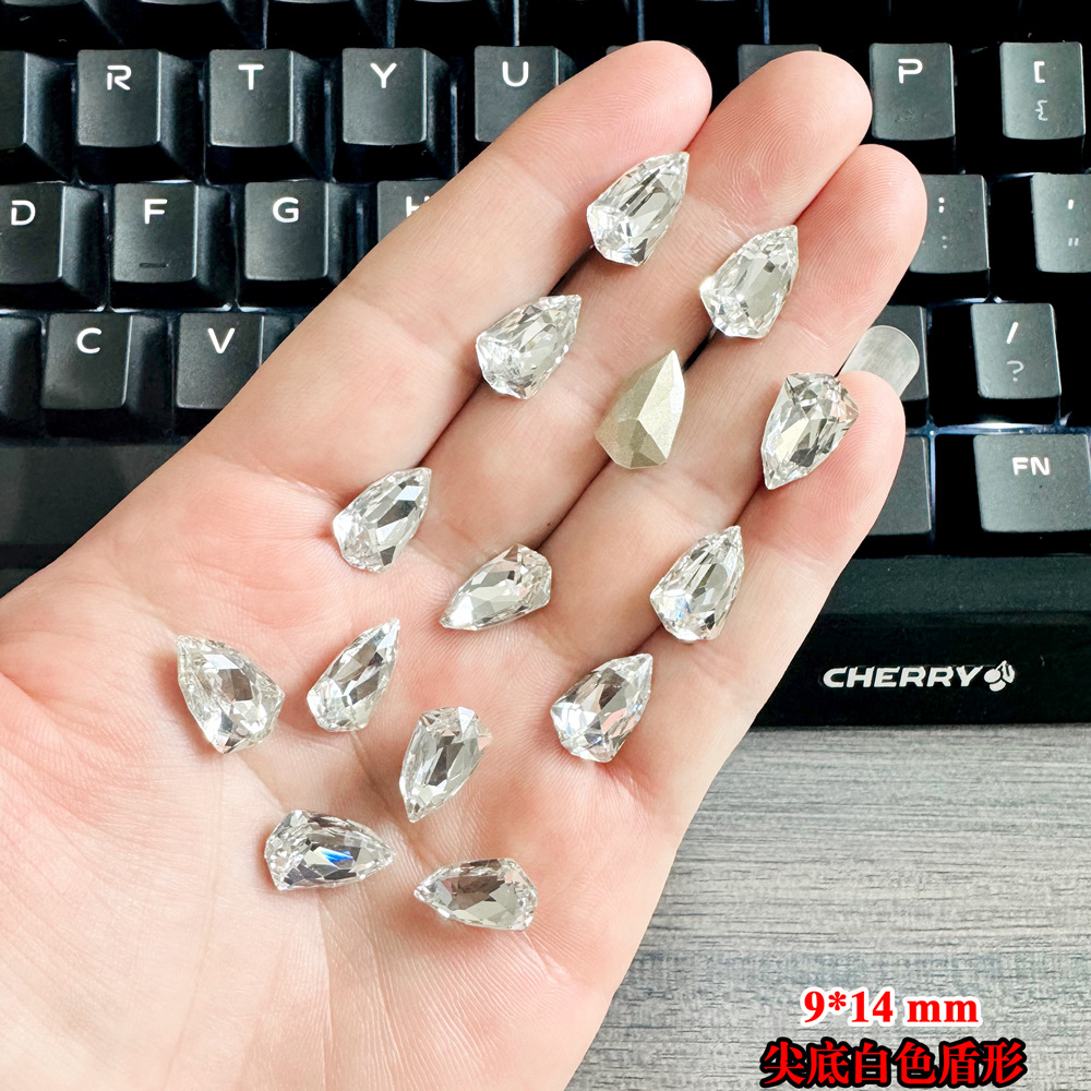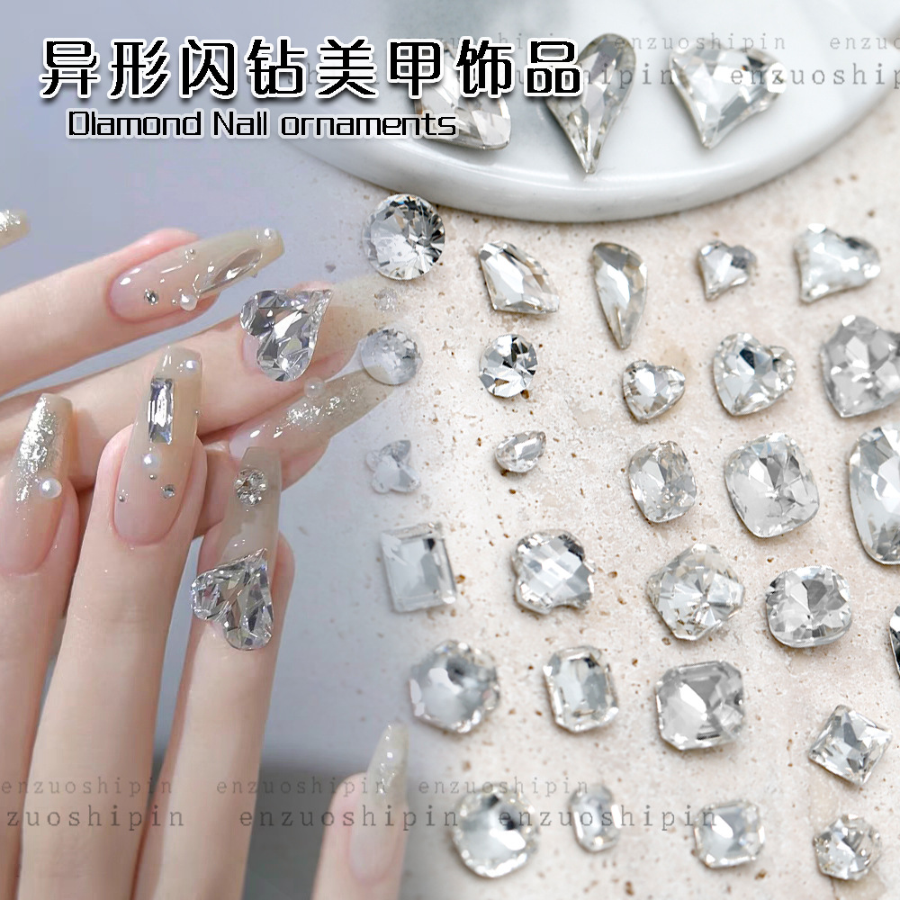 도매 네일 쥬얼리 투명 큰 다이아몬드 뾰족한 바닥 슈퍼 플래시 비뚤어진 도끼 물방울 지방 사각형 나비 흰색 다이아몬드 네일 액세서리스토어 가기
