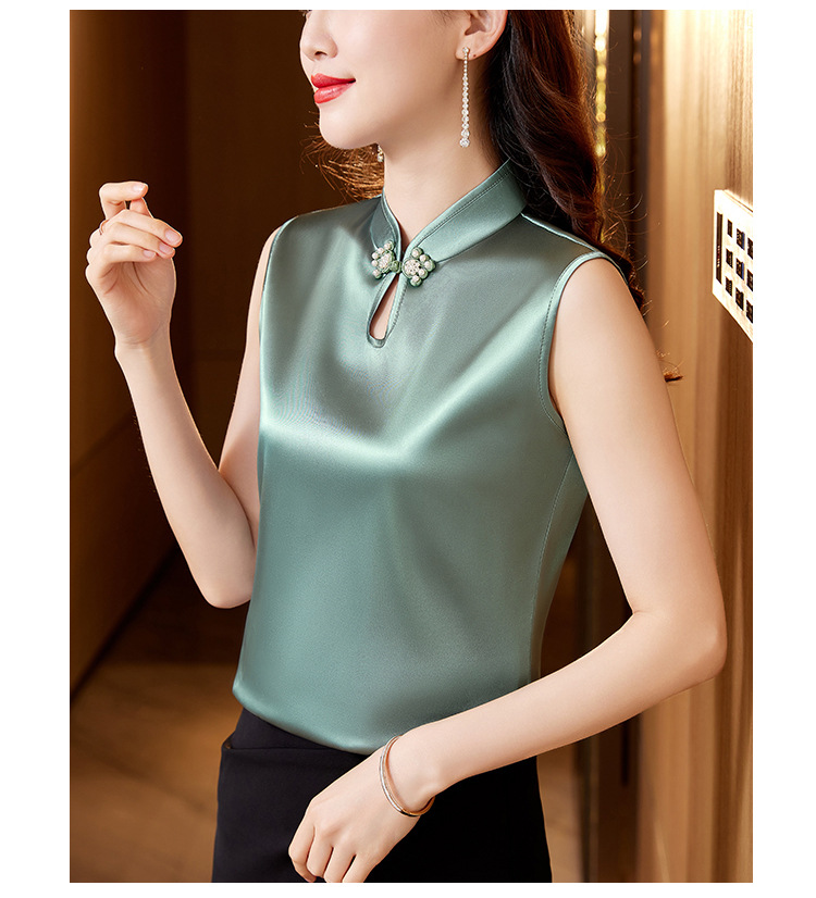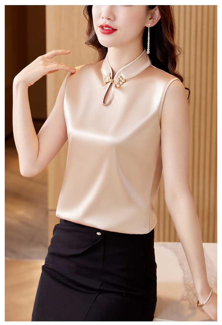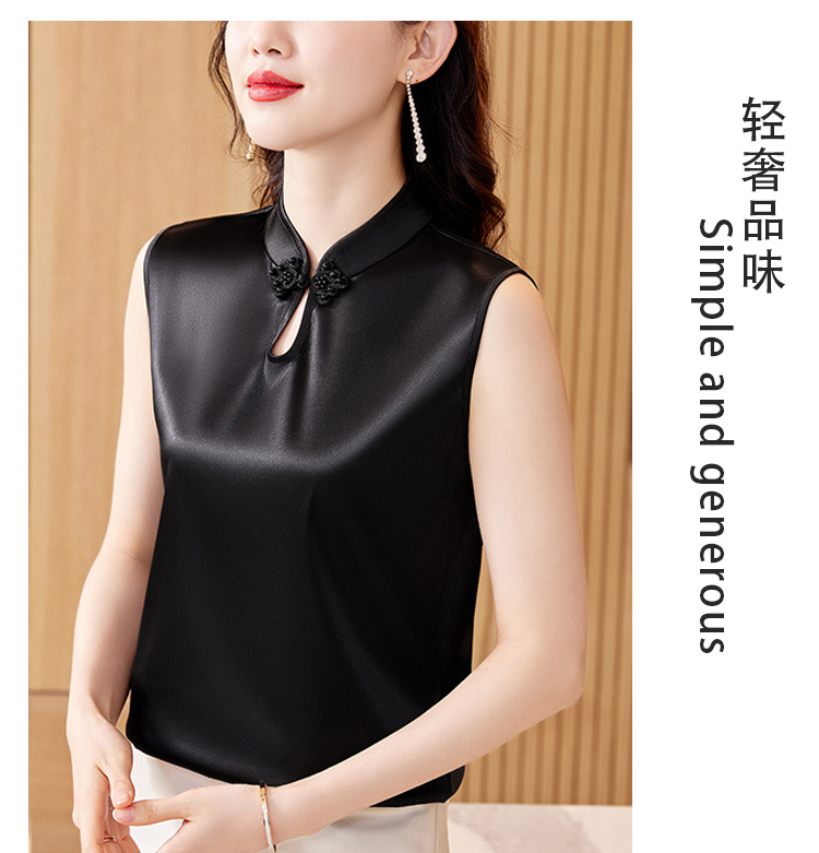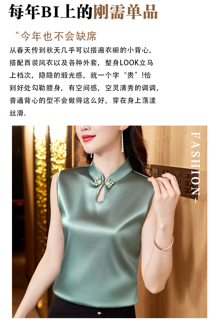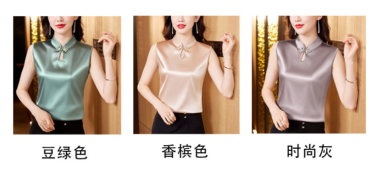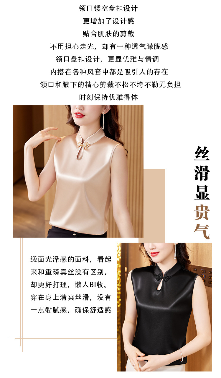 2023 여름 신탄성 새틴 슬림 슬림 스몰 조끼 빈티지 버클 내외 착용 스몰 셔츠 도매