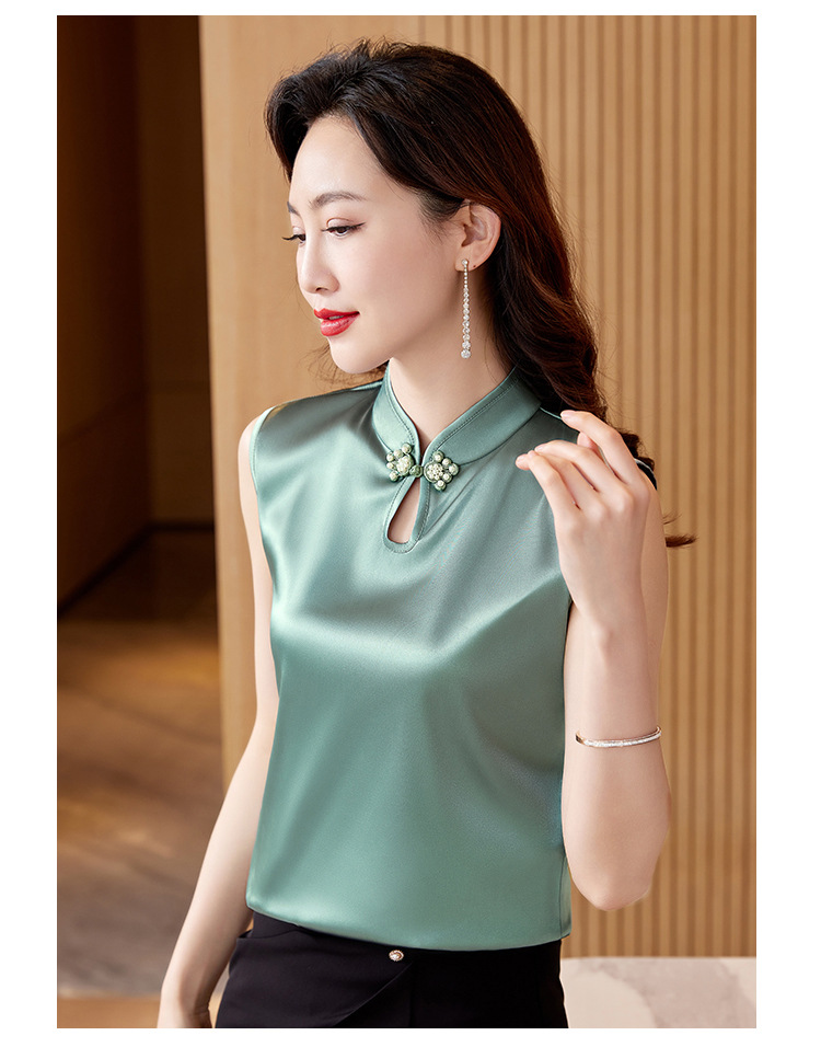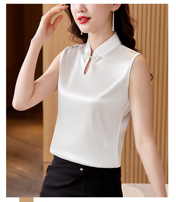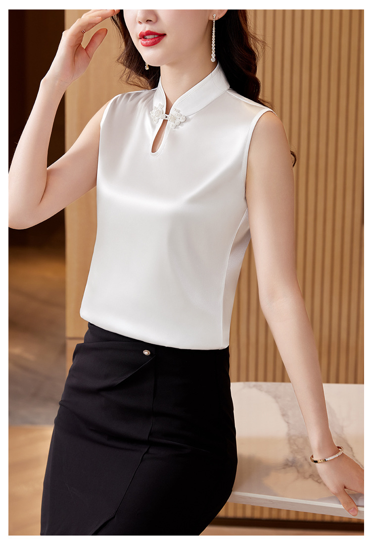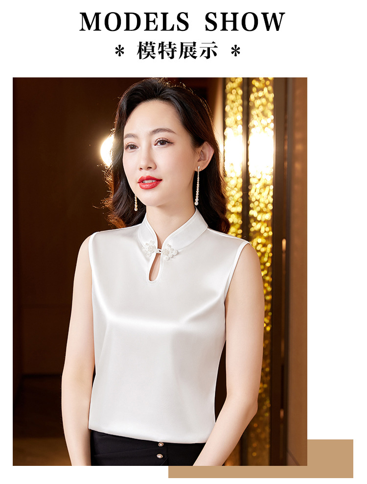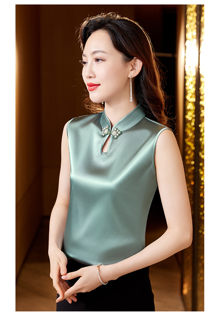 2023 여름 신탄성 새틴 슬림 슬림 스몰 조끼 빈티지 버클 내외 착용 스몰 셔츠 도매