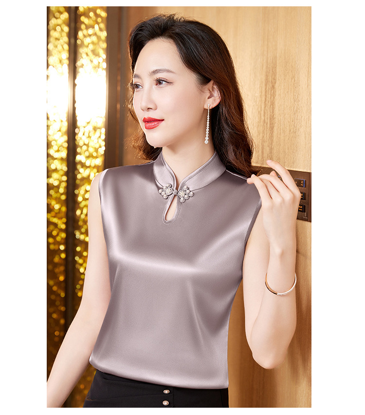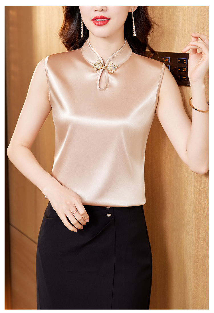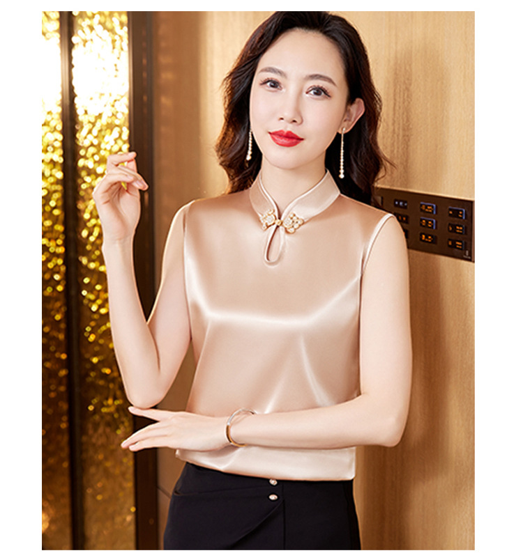 2023 여름 신탄성 새틴 슬림 슬림 스몰 조끼 빈티지 버클 내외 착용 스몰 셔츠 도매스토어 가기