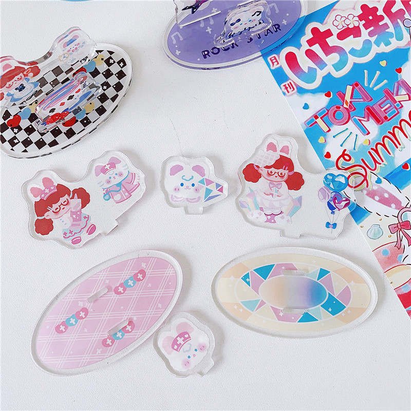 크리 에이 티브 귀여운 만화 아크릴 휴대 전화 브래킷 다기능 장식품 데스크탑 스탠드 장식 소녀 하트 스타일스토어 가기