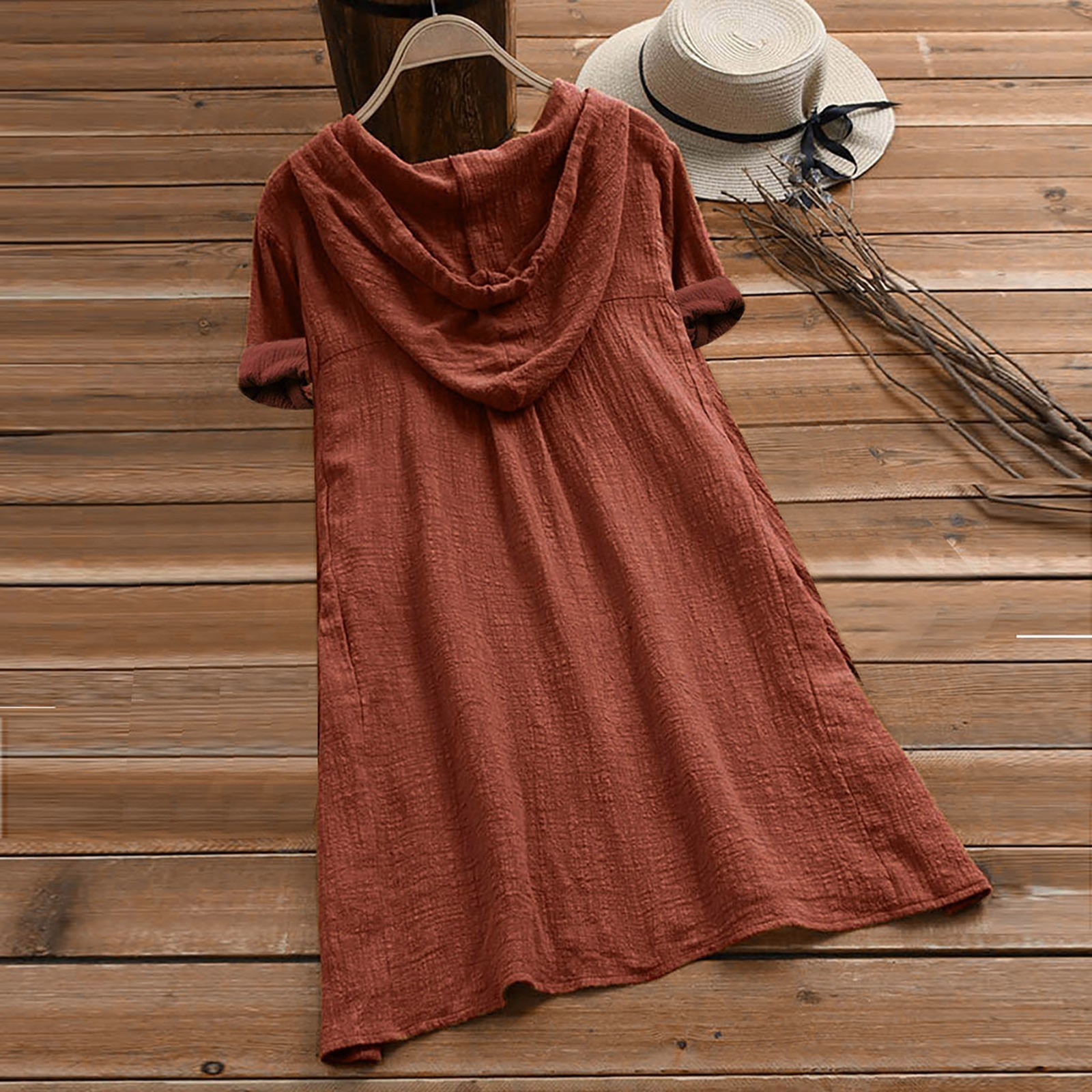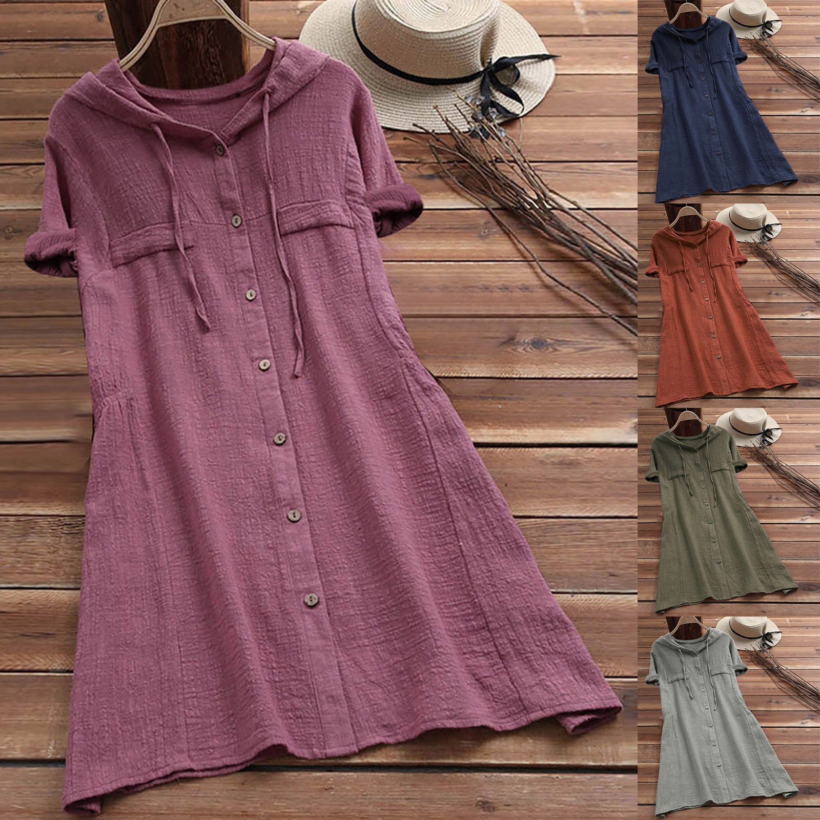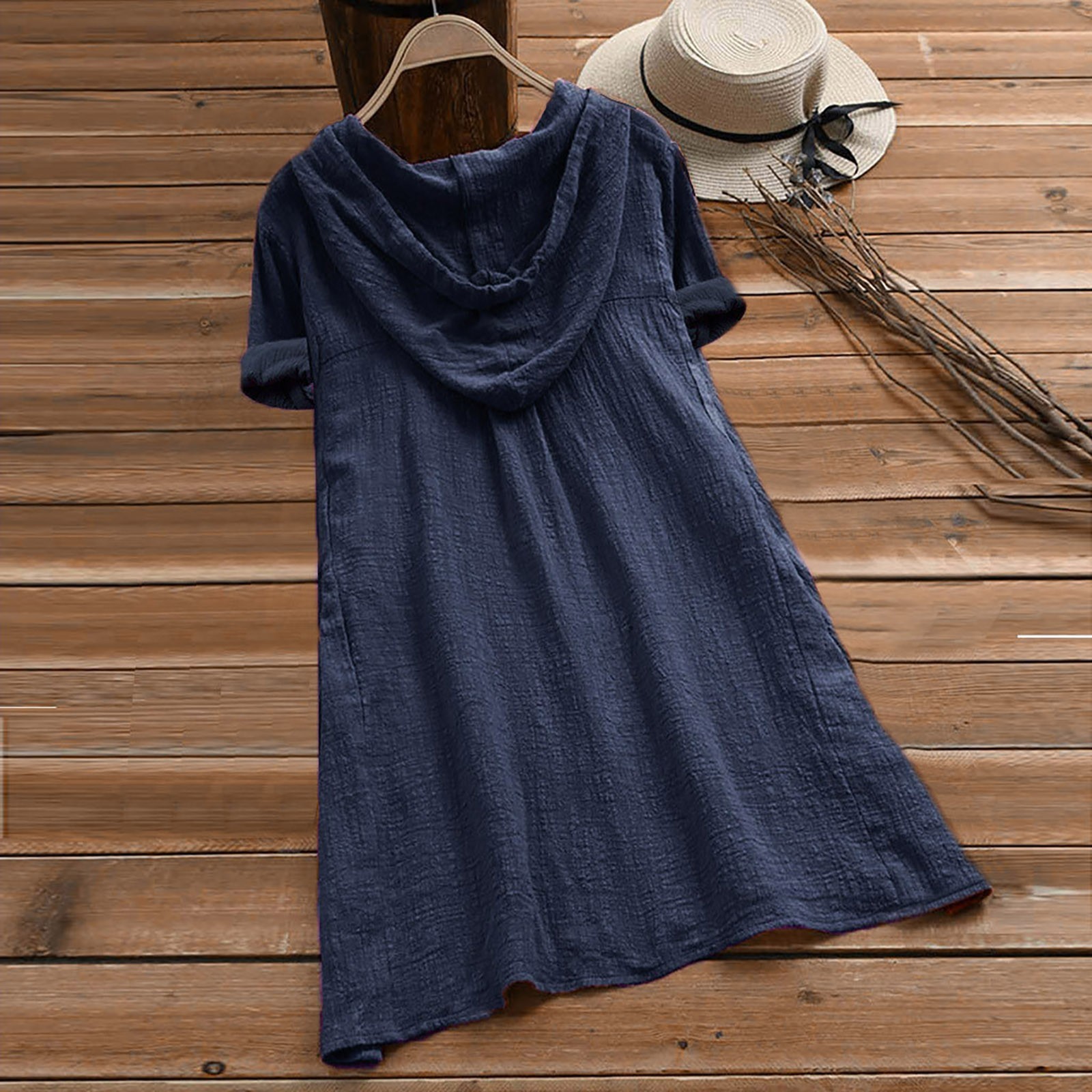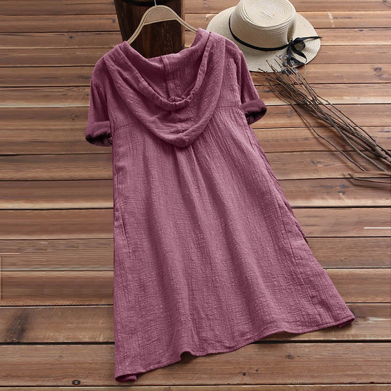 2023 유럽과 미국 새로운 크로스 보더 단색 면화와 린넨 후드 롱 셔츠 원피스스토어 가기