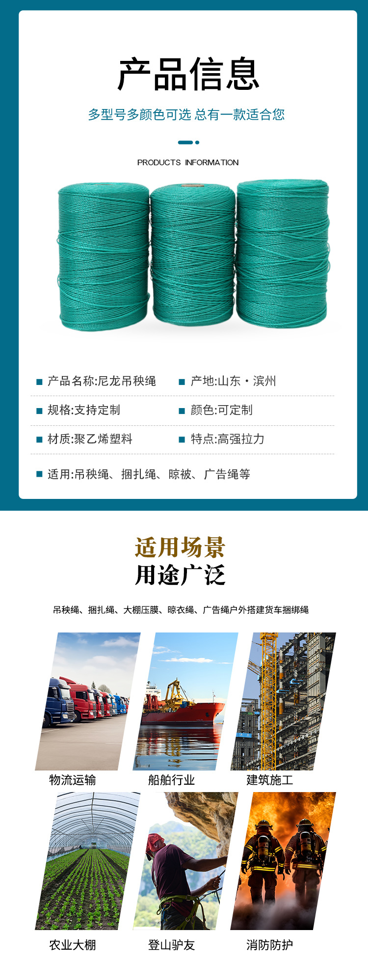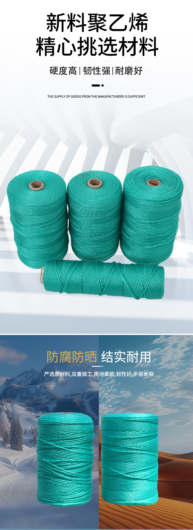 나일론 걸이 로프, 내마모성 신소재, 폴리에틸렌 해양 로프, 도매 온실 라미네이션 로프, 제조업체 트럭 당김 로프