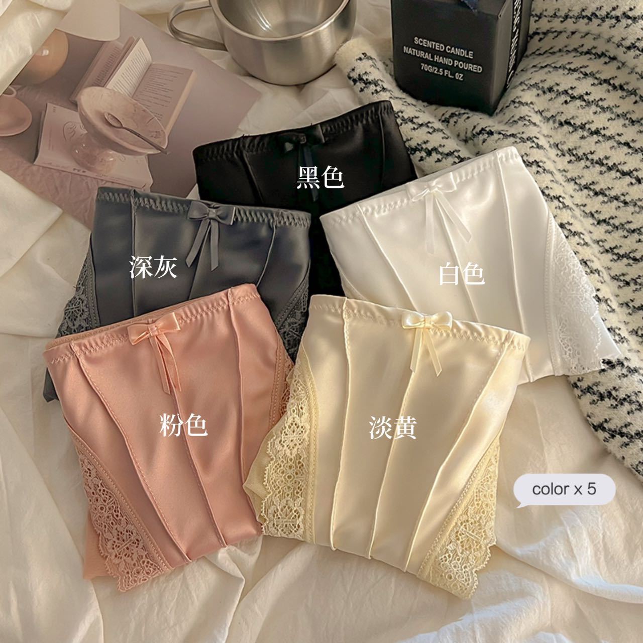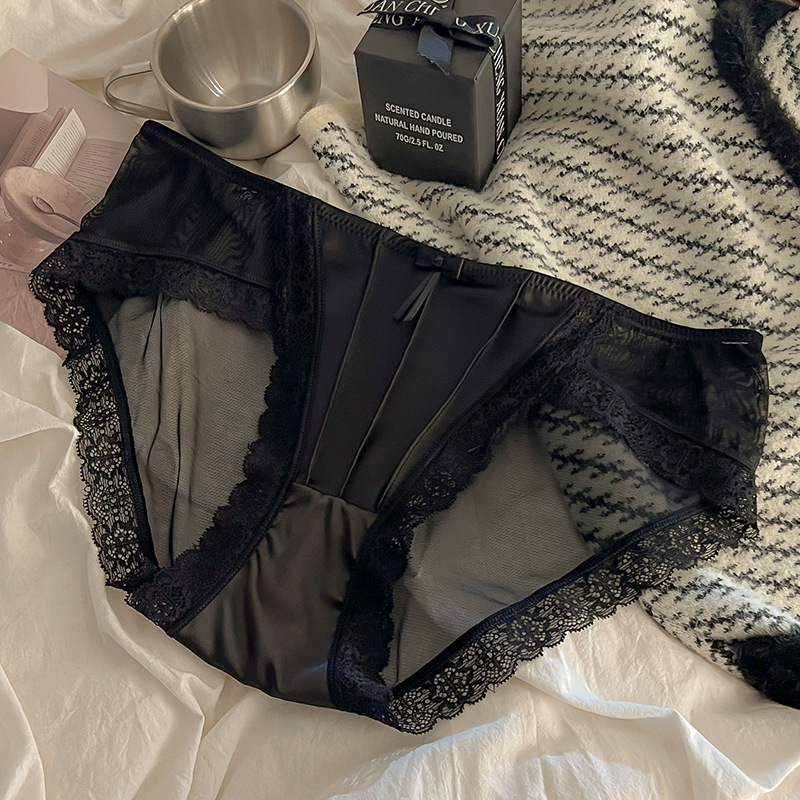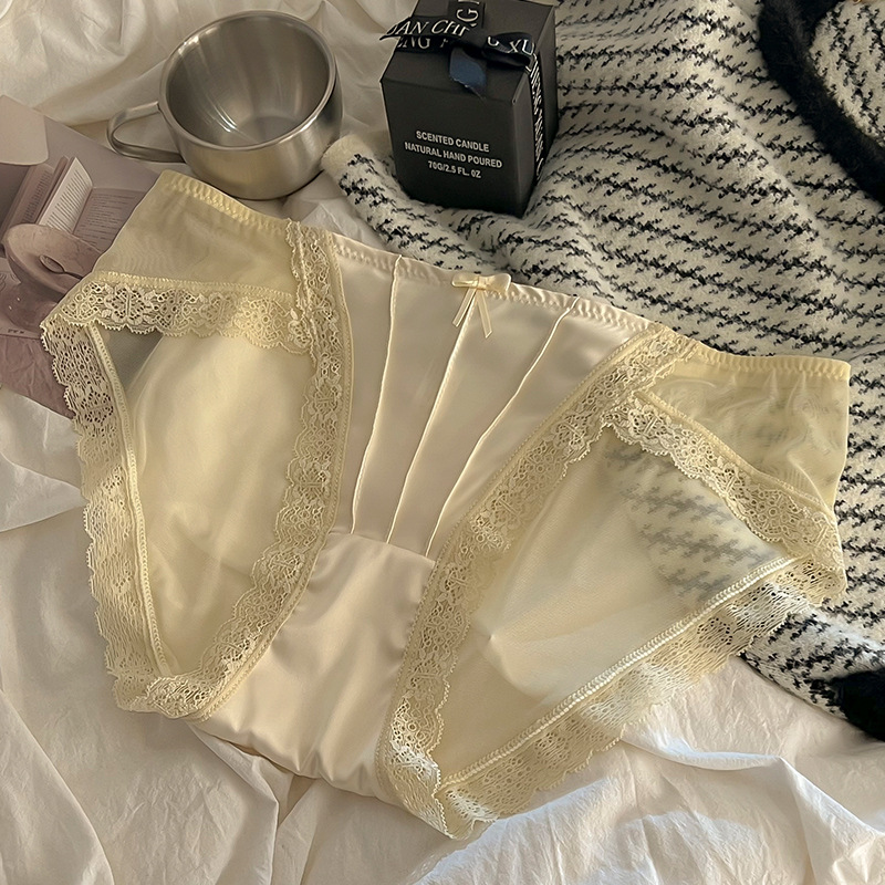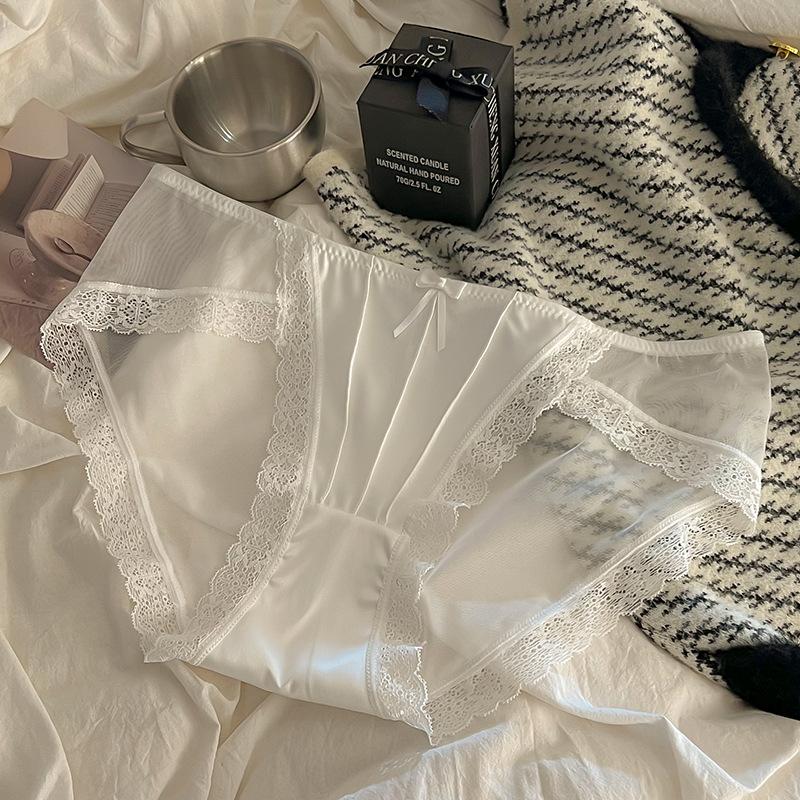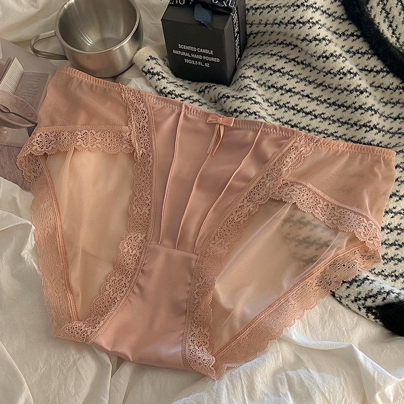 팬티 여자의 원활한 얇은 여자의 프랑스 새틴 순수 레이스 섹시한 메쉬 면 가랑이 미드 웨이스트 반바지