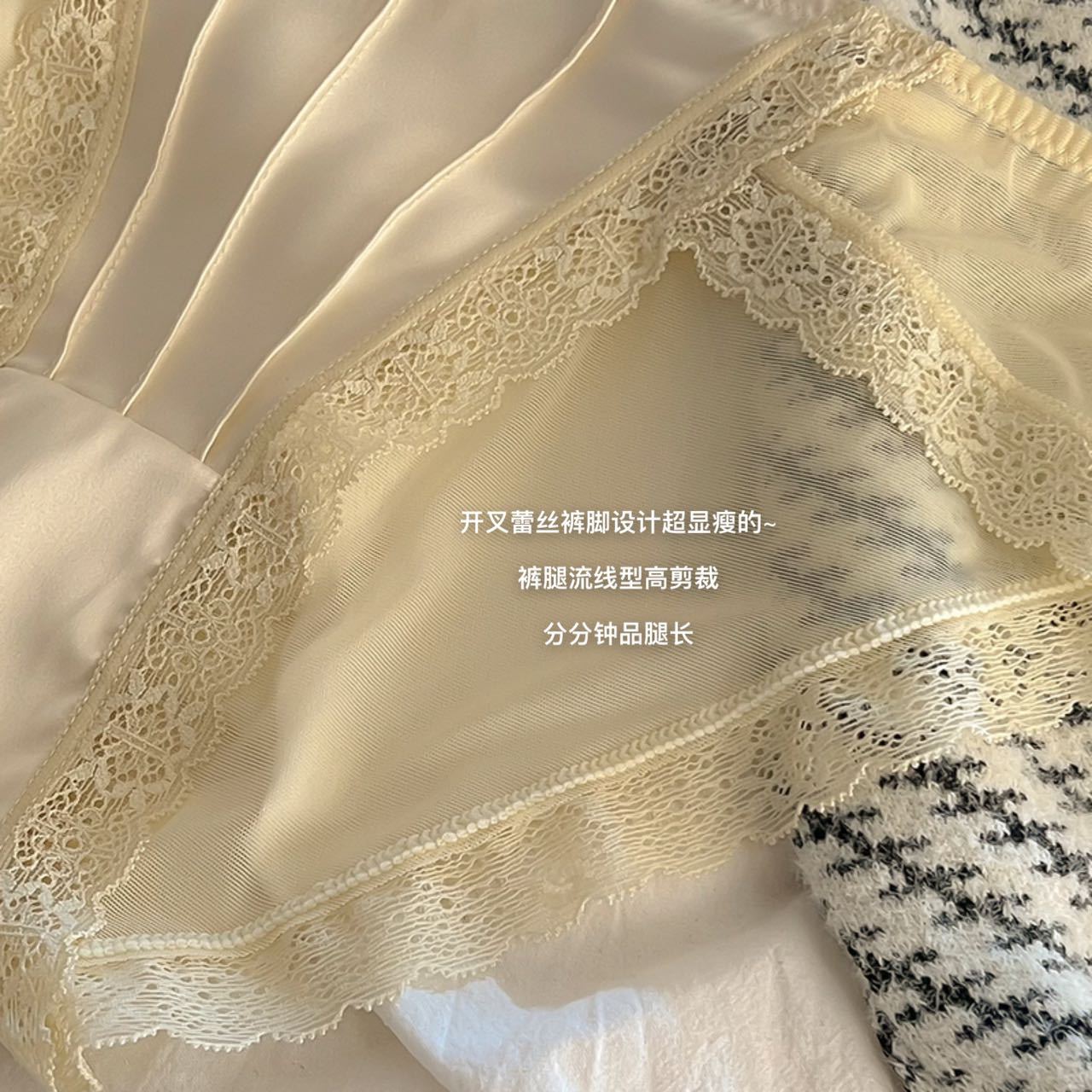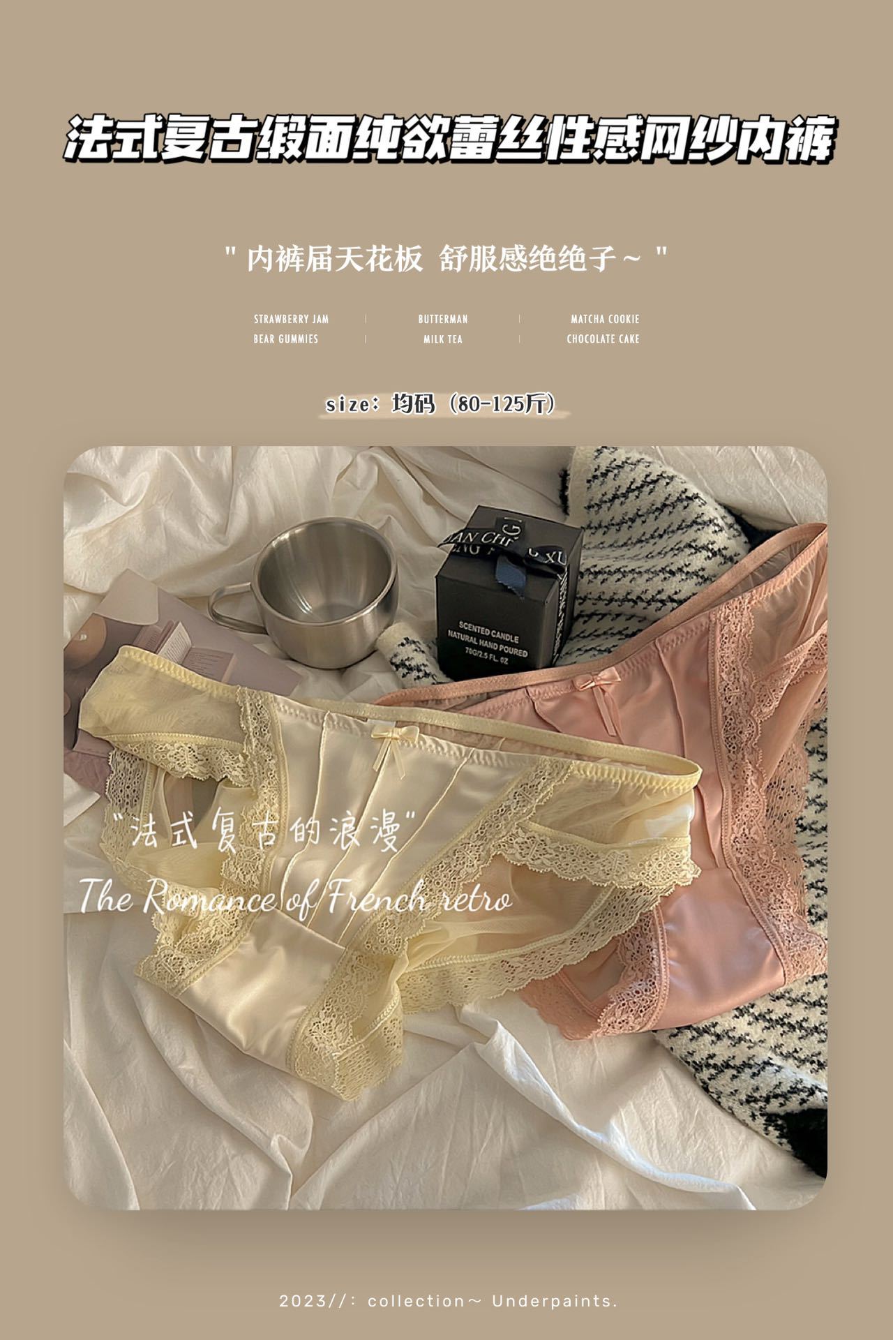 팬티 여자의 원활한 얇은 여자의 프랑스 새틴 순수 레이스 섹시한 메쉬 면 가랑이 미드 웨이스트 반바지스토어 가기