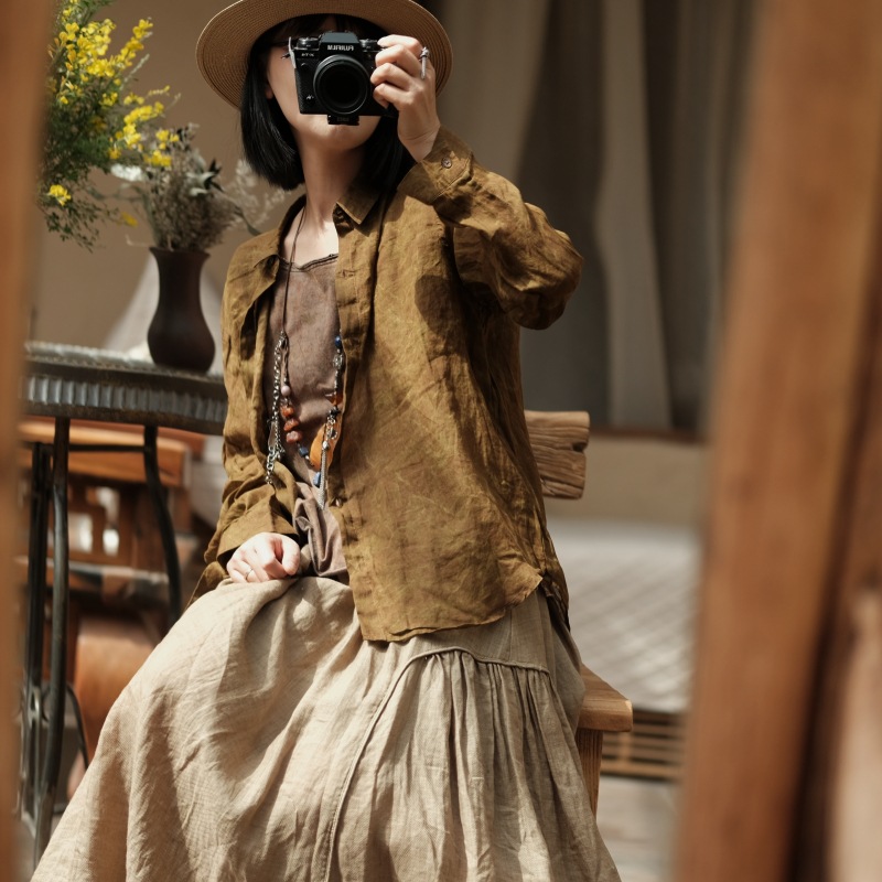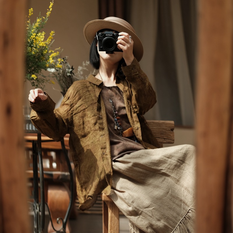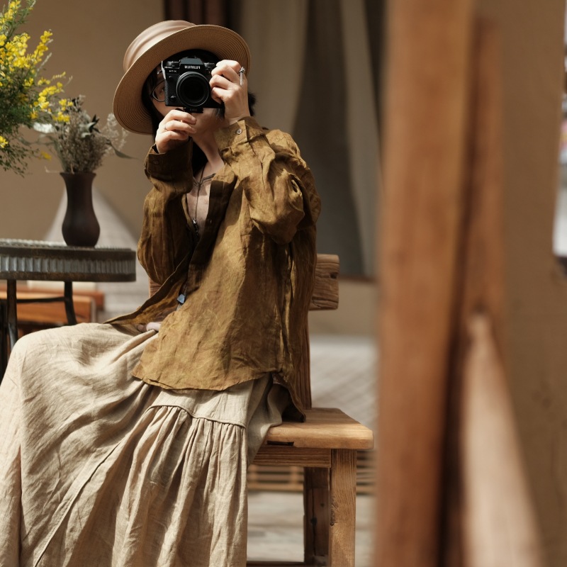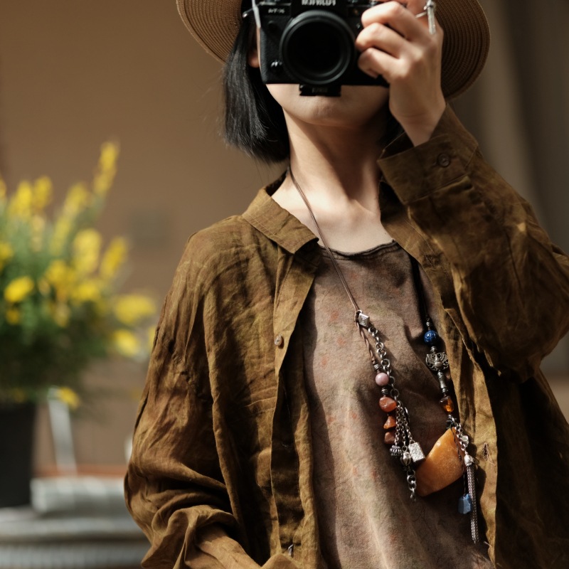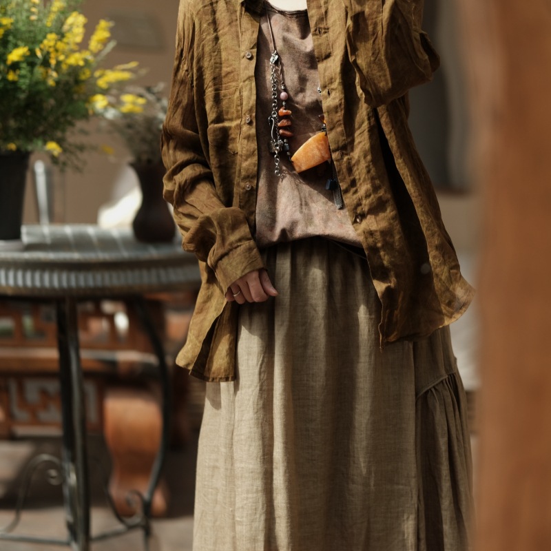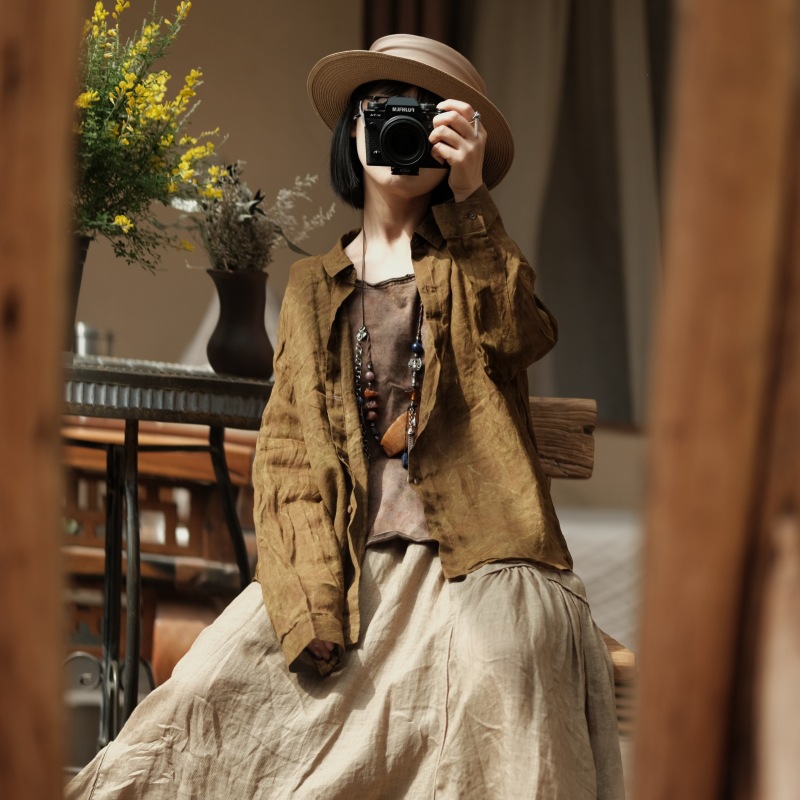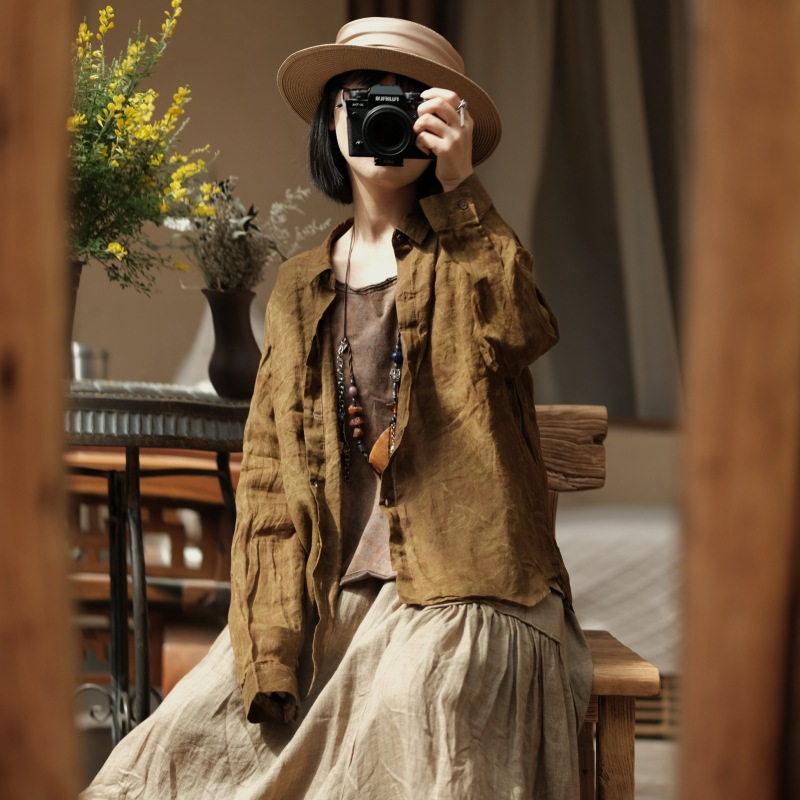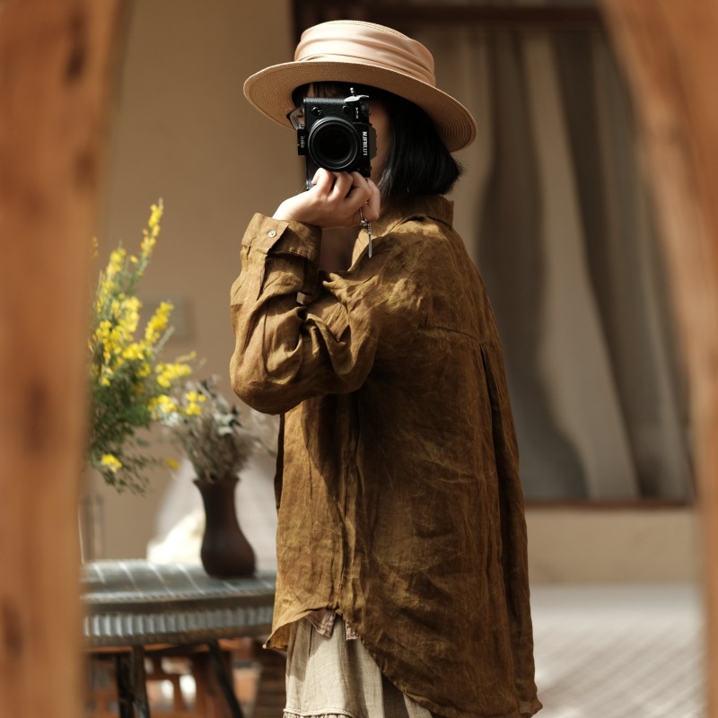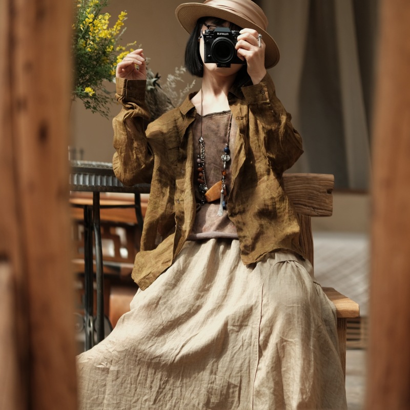 2023 봄 작은 진흙 소녀 빈티지 예술적 워시 순수 라미 느슨한 셔츠 카디건 재킷 2040 Nanke