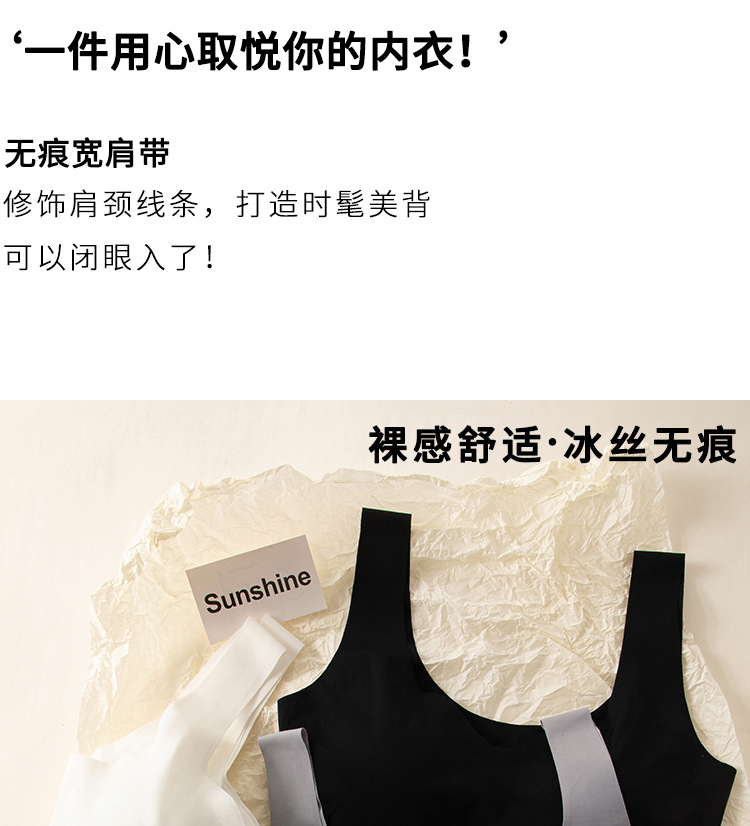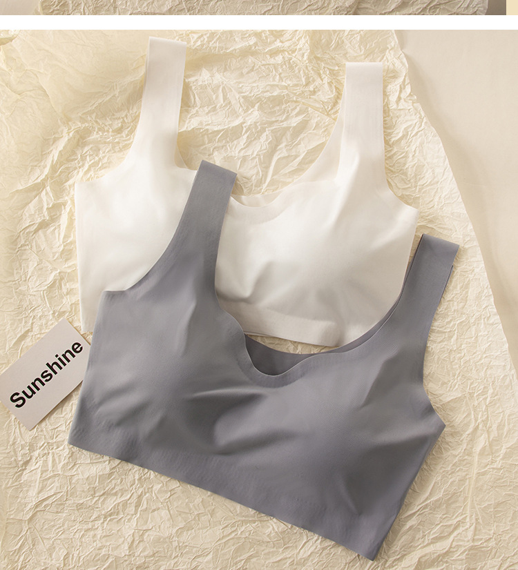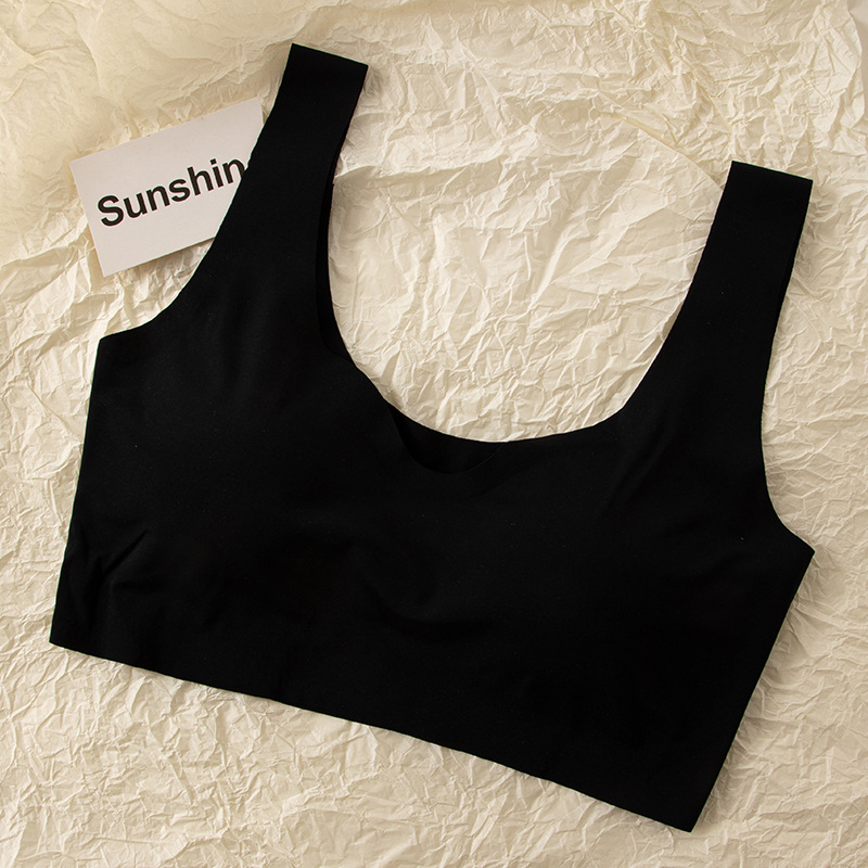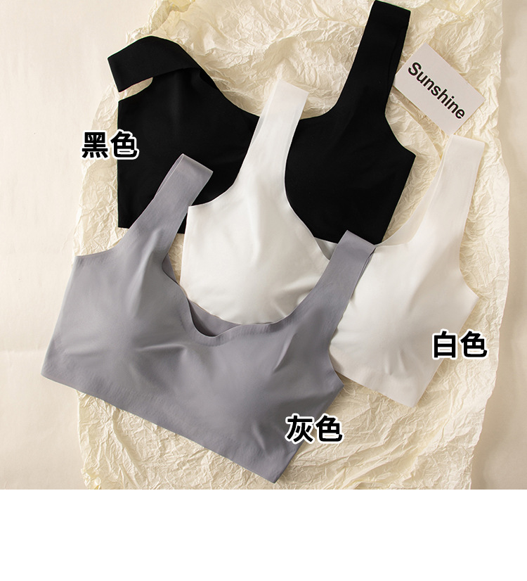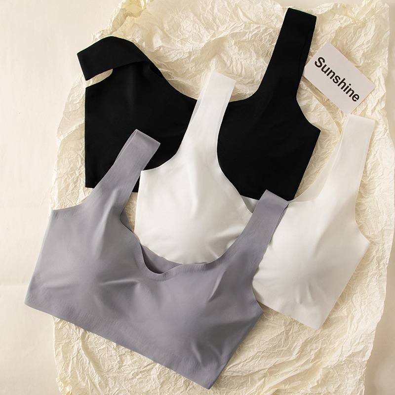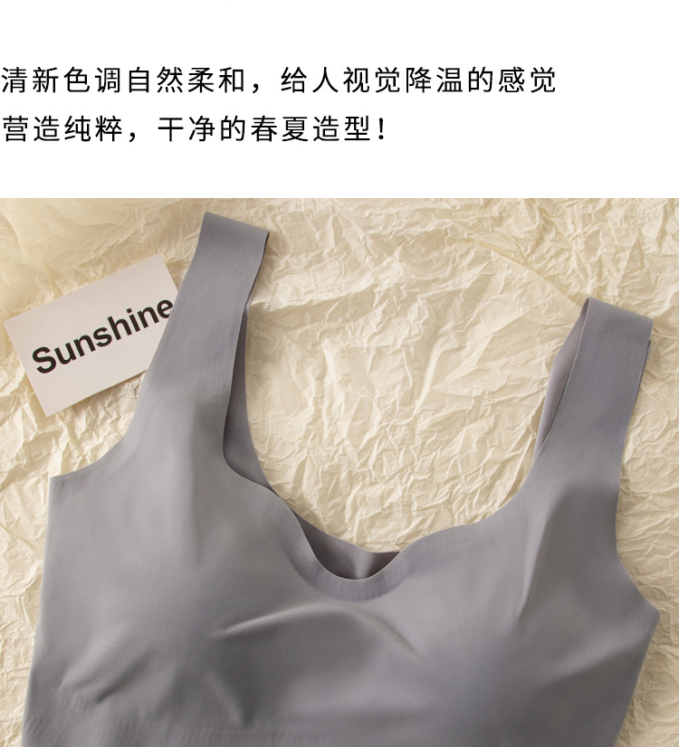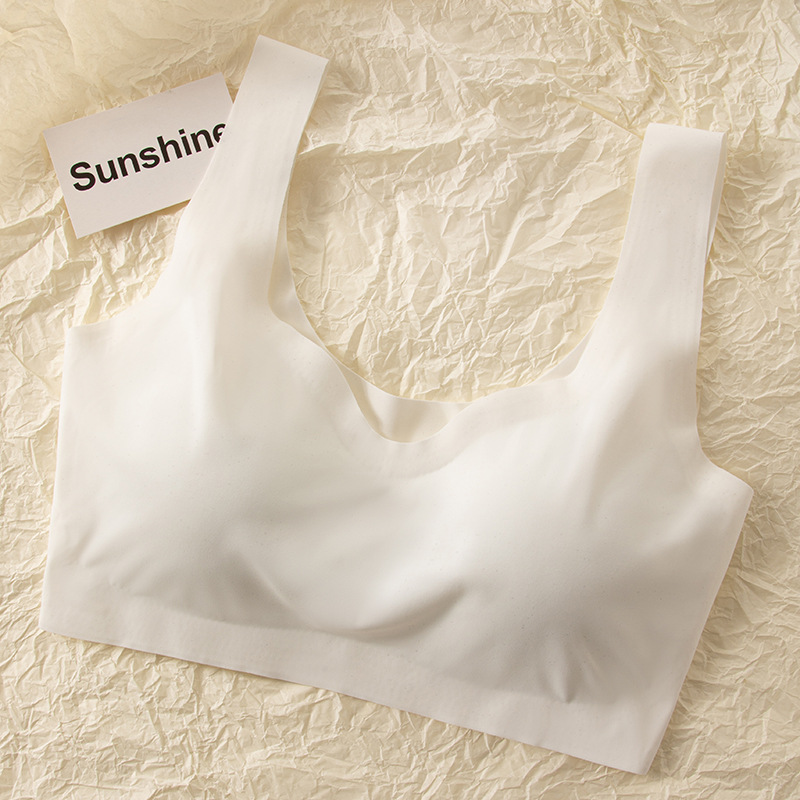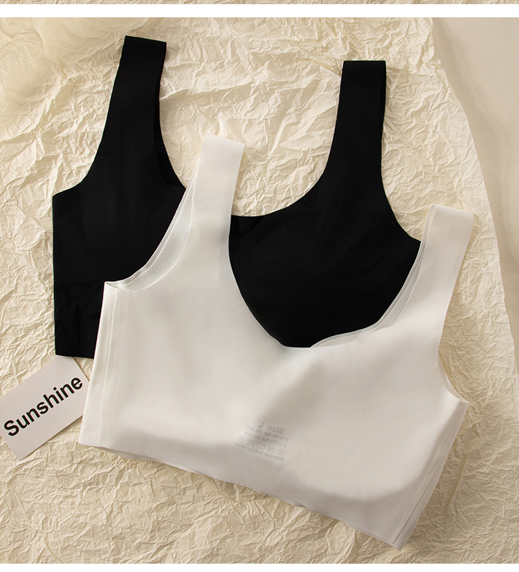 흔적이없는 아이스 실크 내부 옷 스틸 링이없는 소녀의 한국식 스포츠 브라 푸시 업 학생 가슴 노출 작은 조끼 여름 얇은