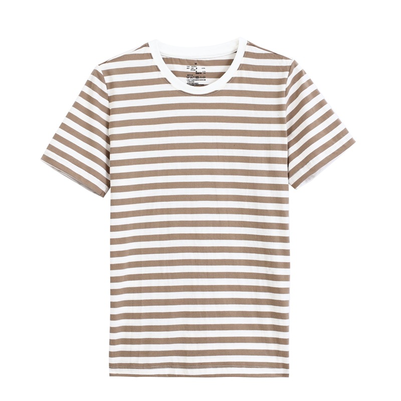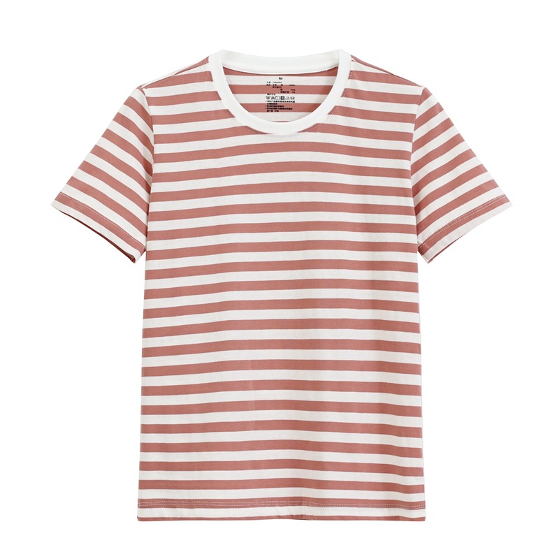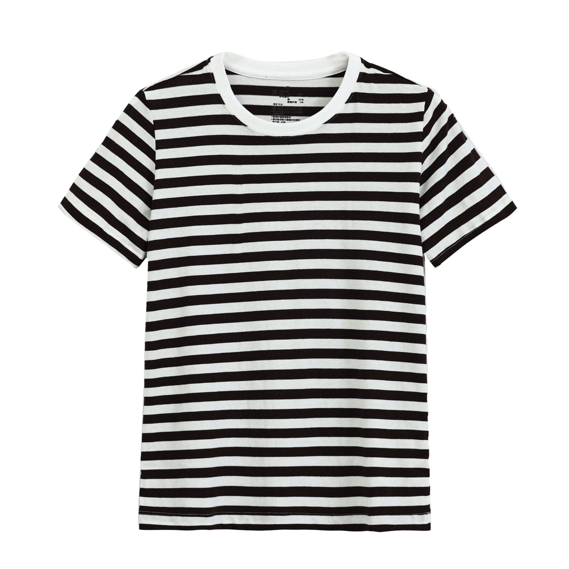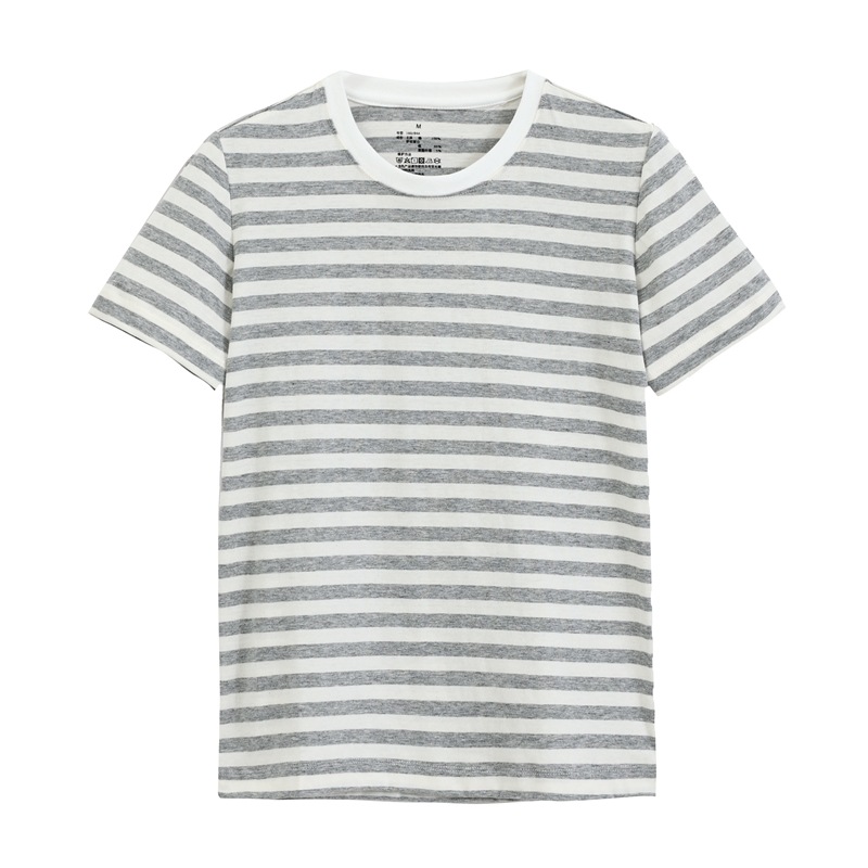 Muji 반팔 티셔츠 Yipin 여성용 인디언 코튼 티셔츠 Tianzhu 코튼 라운드 넥 스트라이프 티셔츠 여성용 베이스 셔츠