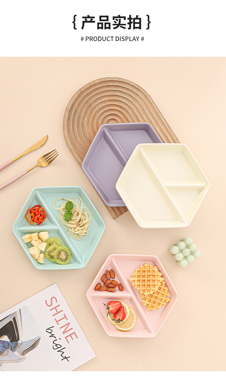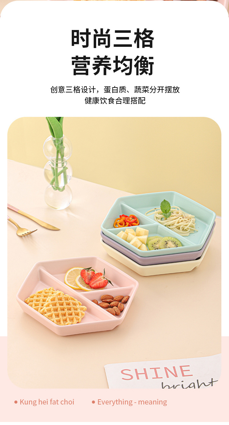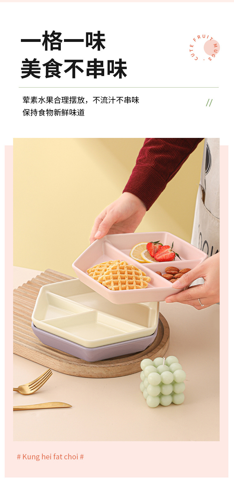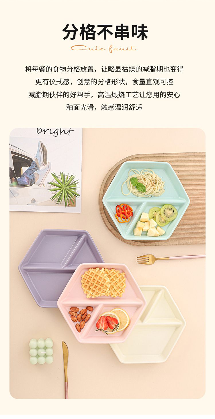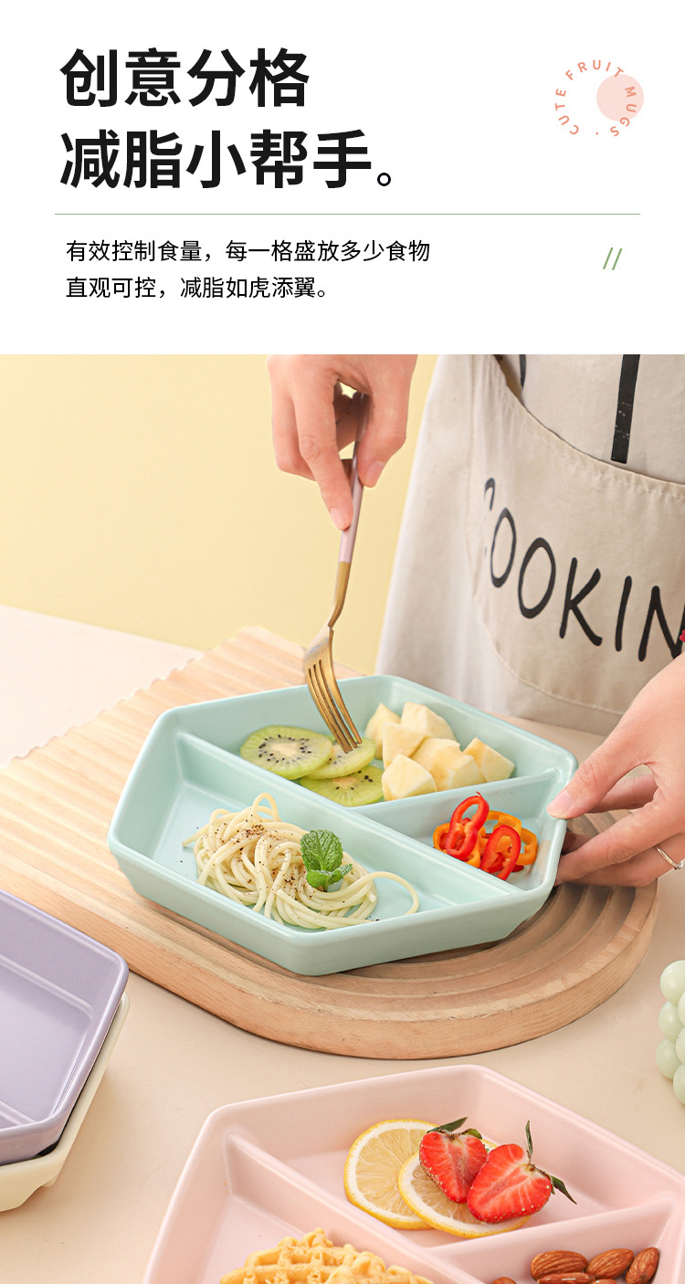 6 코너 플레이트가있는 지방 감소 디너 플레이트 라운드 3 칸 세라믹 플레이트 성인과 어린이를위한 아침 식사 디너 플레이트 체중 감소 과일 플레이트