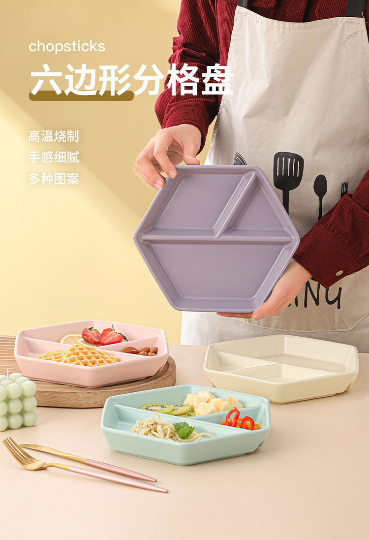 6 코너 플레이트가있는 지방 감소 디너 플레이트 라운드 3 칸 세라믹 플레이트 성인과 어린이를위한 아침 식사 디너 플레이트 체중 감소 과일 플레이트스토어 가기